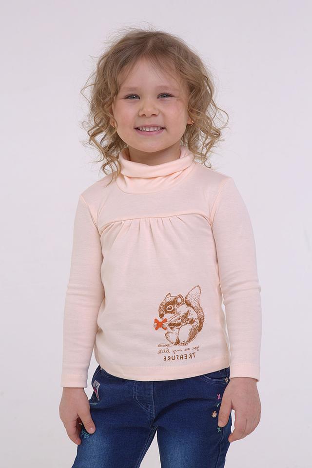 Бежевый джемпер от КотМарКот для девочки с длинным рукавом и высоким воротником. Модель украшена милым принтом с бельчонком и надписью. Изготовлен из мягкого и приятного к телу хлопка. Состав: хлопок 100%