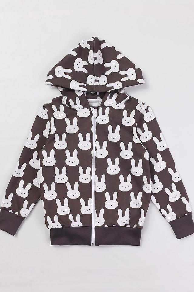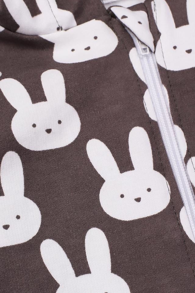 Джемпер КотМарКот серого цвета с забавным принтом в виде белых зайчиков — отличный выбор для маленьких модниц. Удобная застёжка-молния и капюшон делают эту модель практичной и комфортной для повседневной носки. Состав: хлопок 100%