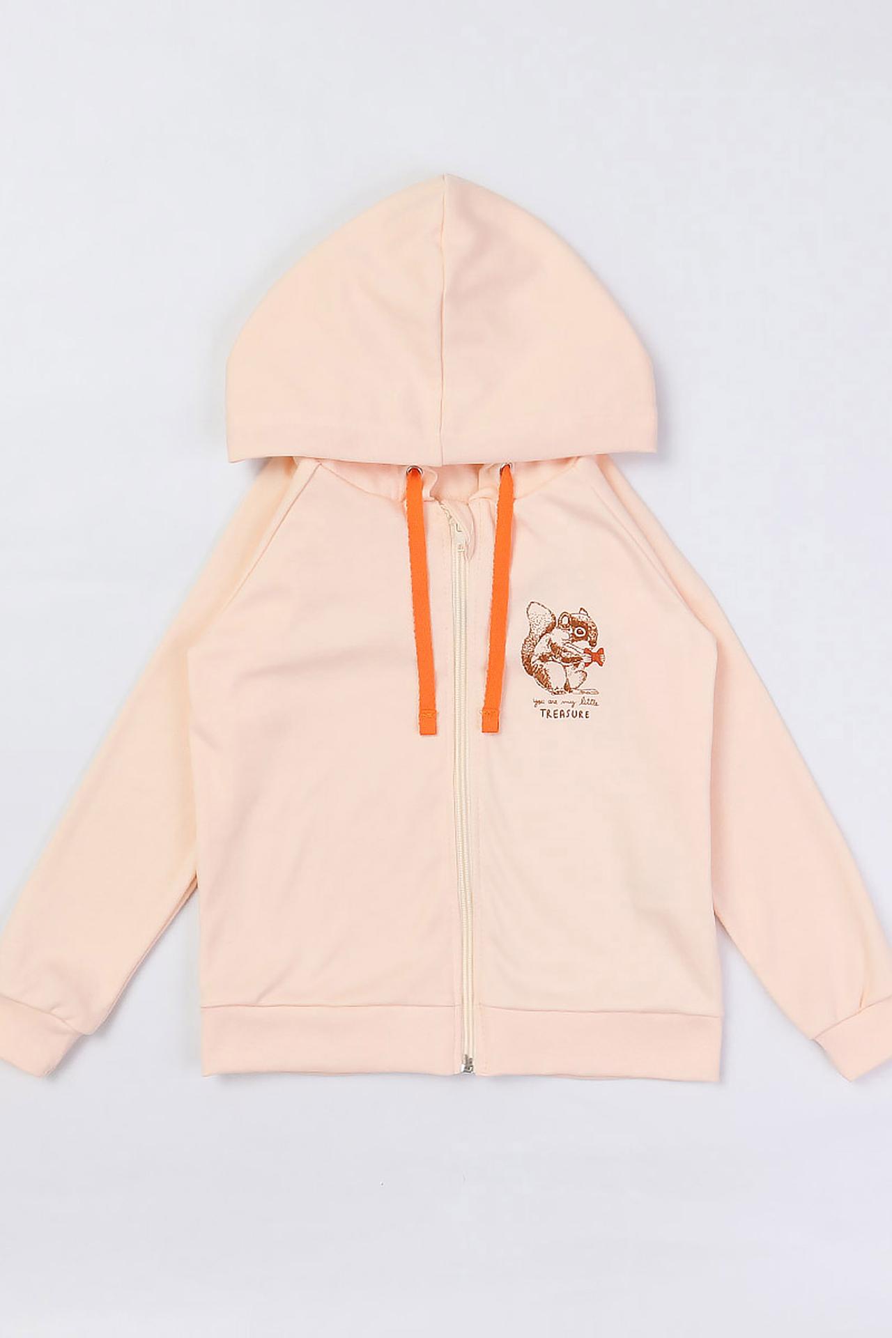 Худи КотМарКот персиковый с вышивкой белки и капюшоном