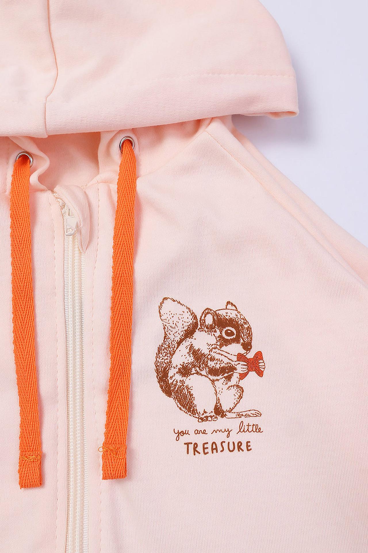 - Оригинальный принт: На передней части джемпера расположен милый принт в виде белки и надпись «you are my little TREASURE», что придает изделию индивидуальность и подчеркивает ценность вашего ребенка.