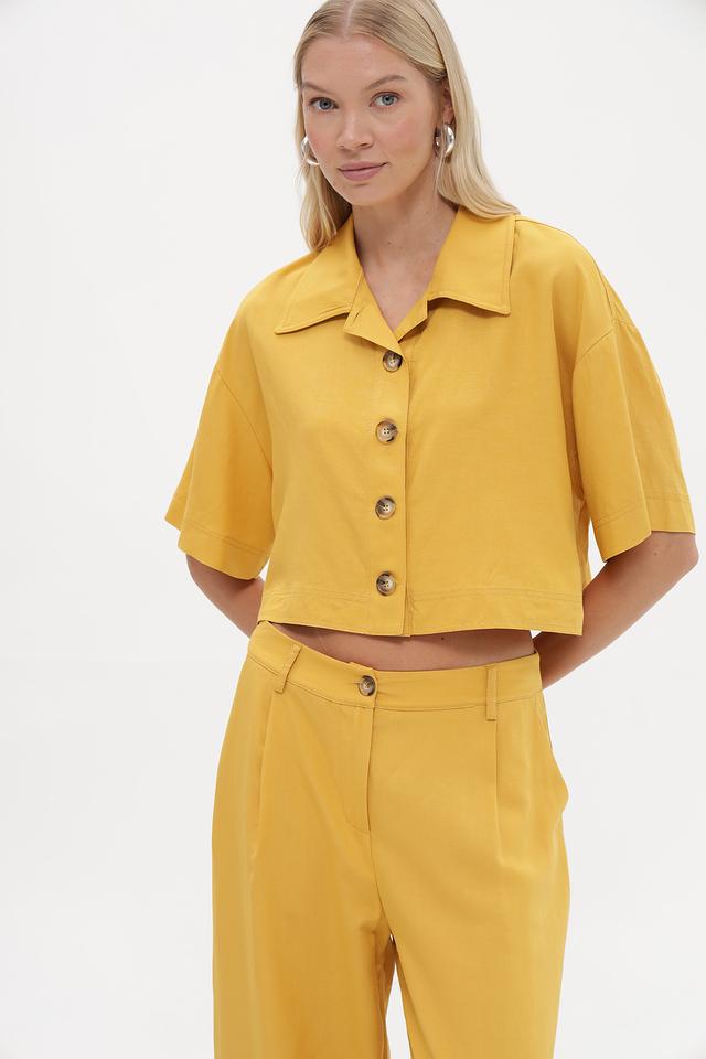 Жакет Croche горчичного цвета – стильное и современное решение для создания яркого образа. Модель выполнена из вискозы с добавлением льна, что обеспечивает комфорт и воздухопроницаемость. Состав: вискоза 80%, лен 20%