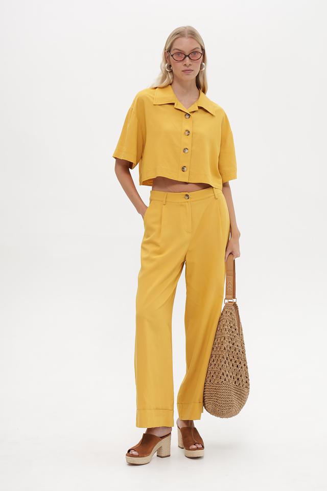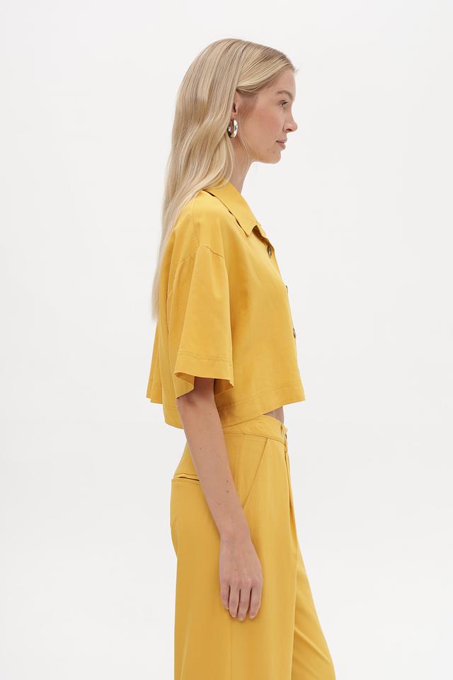 Этот укороченный жакет от Croche станет отличным дополнением к вашему гардеробу. Яркий горчичный цвет добавит образу свежести и оригинальности.