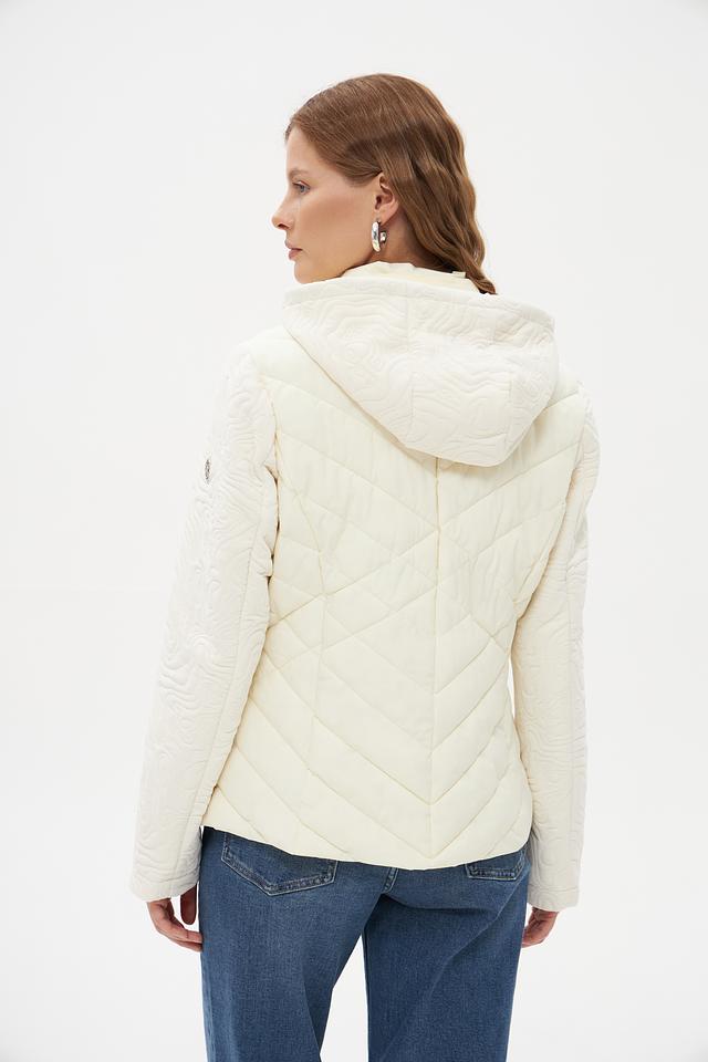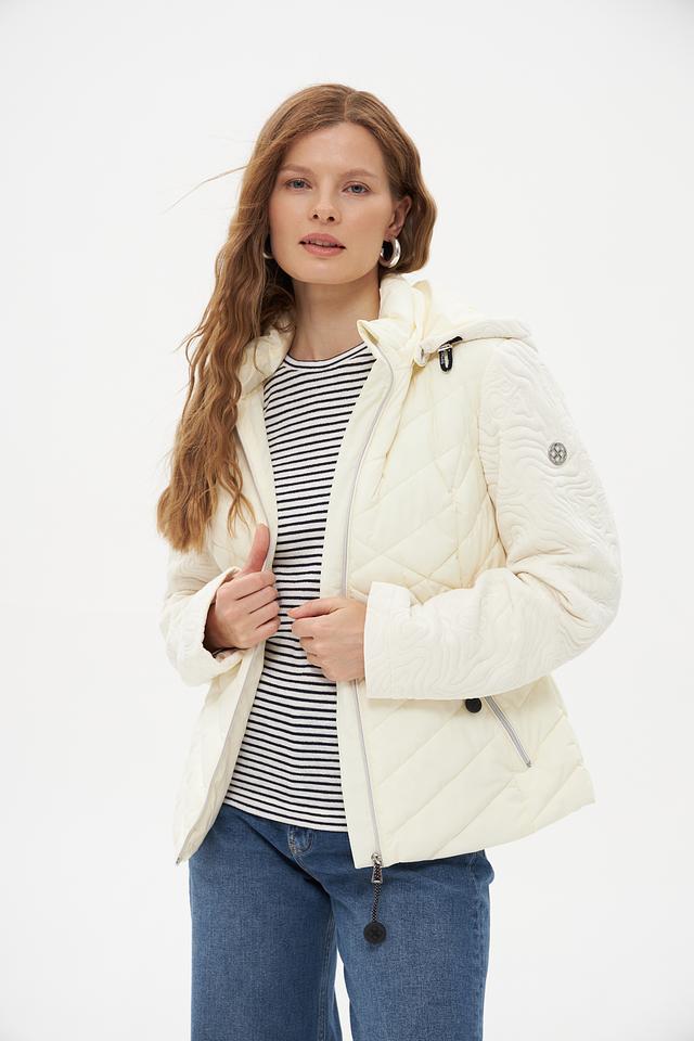 Эта куртка от бренда District станет отличным дополнением к вашему гардеробу. Выполнена в бежевом цвете, имеет стеганую фактуру и удобный капюшон.