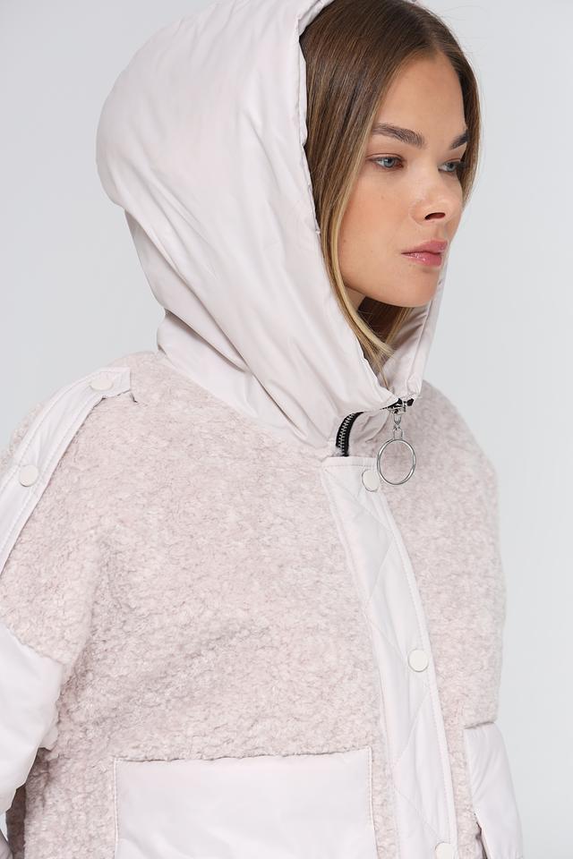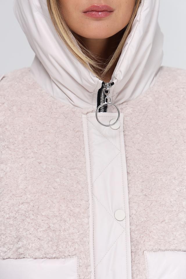 Женская куртка Electra style нежно-бежевого цвета – стильное сочетание стеганого и фактурного "плюшевого" материала. Модель с капюшоном выполнена из 100% полиэстера с утеплителем из полиэстера. Состав: Состав_2 полиэстер 100%, Состав_наполнитель полиэстер 100%, Состав_подкладка вискоза 80%, шерсть 65%, Состав_подкладка полиэстер 20%, ацетат 13%, вискоза 12%, полиэстер 10%