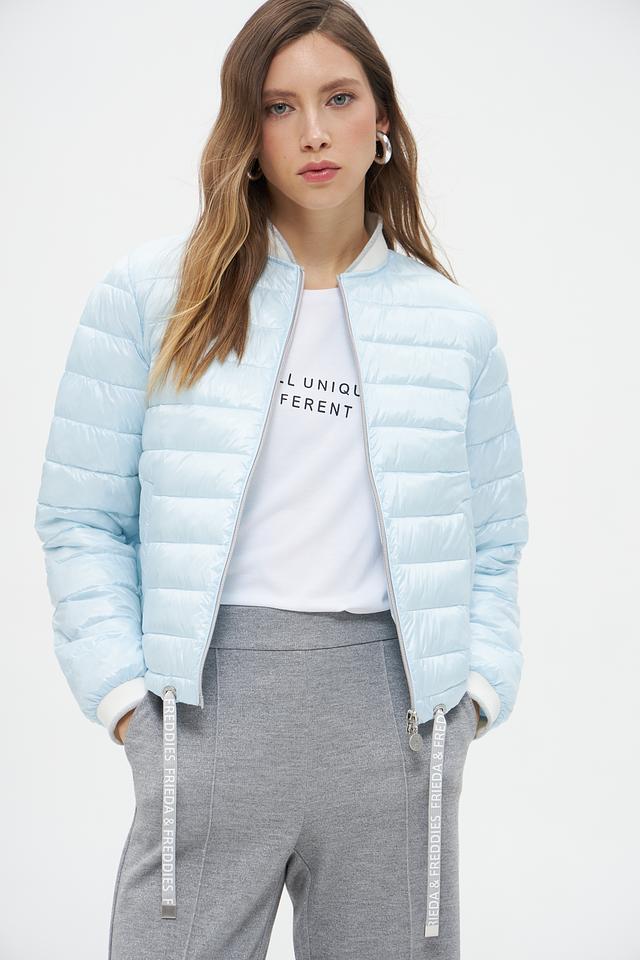 Эта куртка от Frieda and Freddies станет отличным дополнением к вашему гардеробу. Она выполнена в нежном голубом цвете и имеет стеганую текстуру, которая придает ей современный вид.