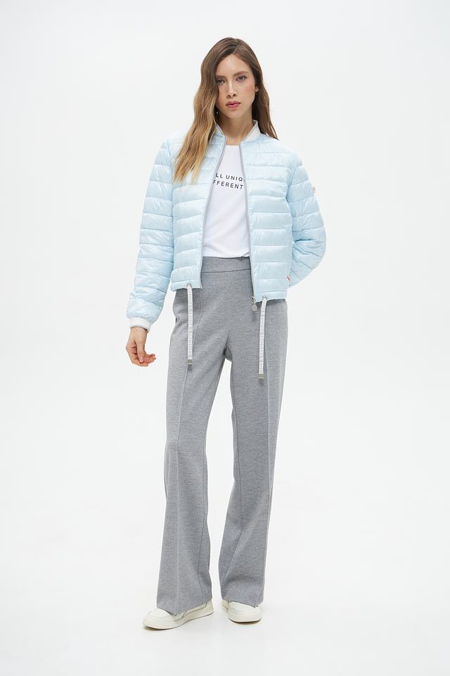 Куртка имеет короткую длину и прямой крой, что делает ее универсальной и подходящей для различных стилей одежды. Застежка-молния обеспечивает легкость надевания и снятия. Воротник-стойка добавляет куртке элегантности.