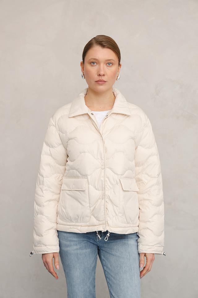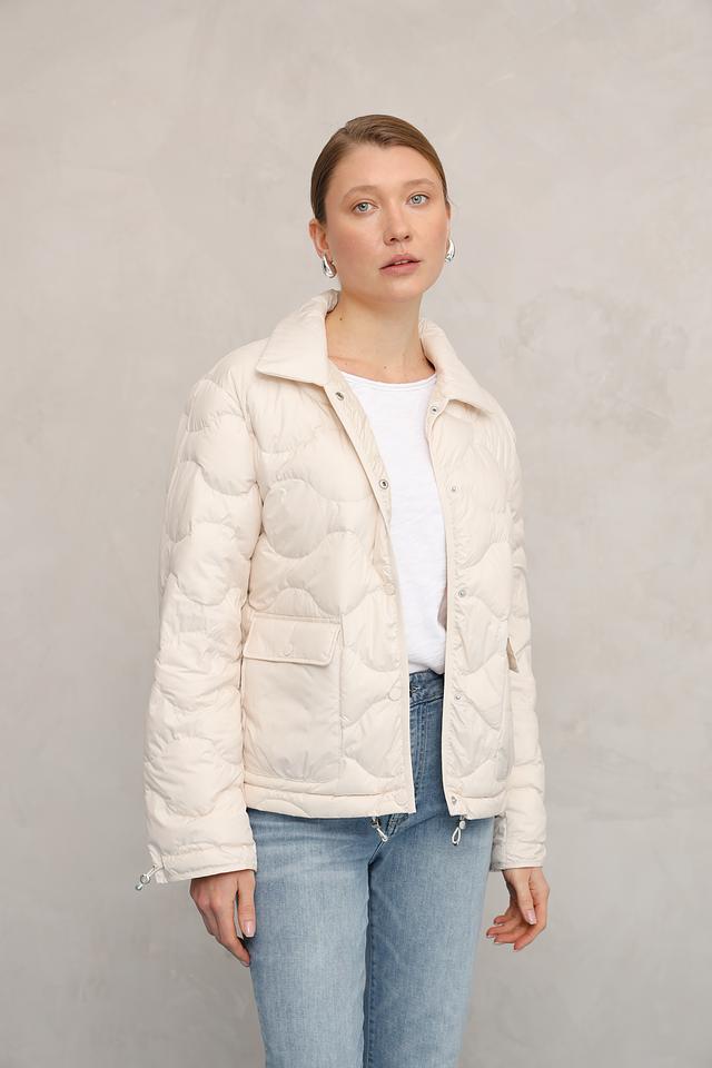 Куртка имеет стеганую фактуру, которая придает ей объём и оригинальность. Застежка на кнопки обеспечивает удобство и быстроту одевания. Воротник-стойка защитит от ветра, а боковые карманы с клапанами позволят хранить необходимые мелочи.