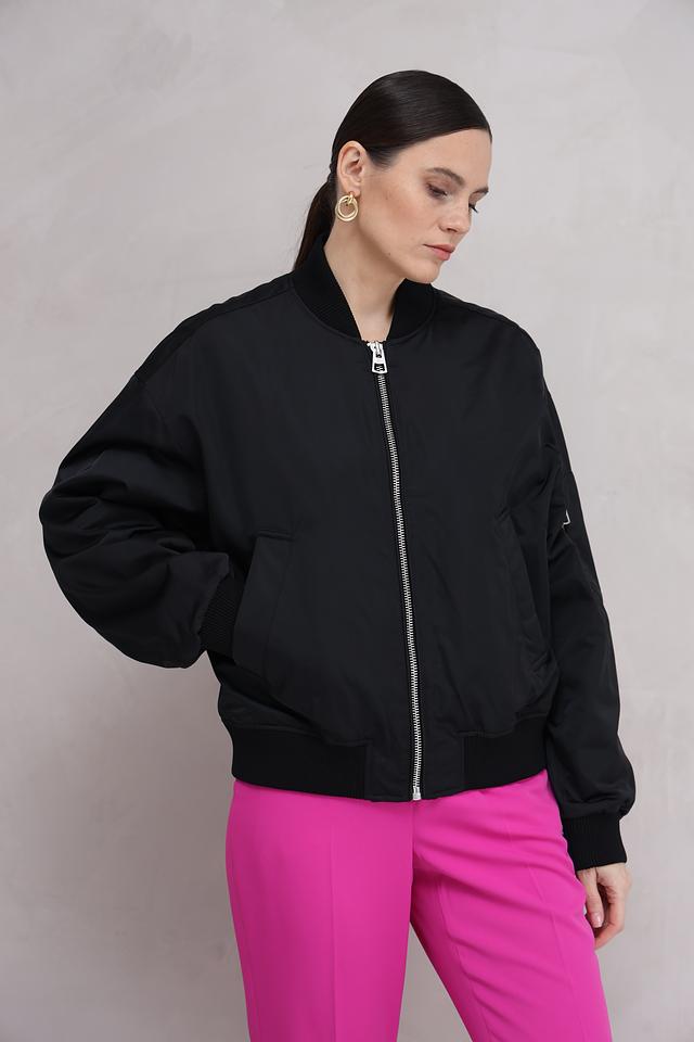 Эта куртка от Marc O Polo выполнена из высококачественного полиэстера, что обеспечивает легкость и износостойкость. Классический чёрный цвет делает её универсальным элементом гардероба, который легко сочетается с различными стилями одежды.