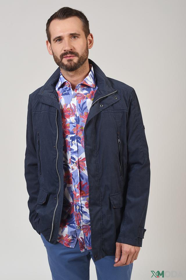 Куртка имеет классический крой, который подходит для большинства типов фигуры. Синий цвет придает ей универсальность, позволяя легко сочетать ее с различными элементами одежды. Застежка-молния обеспечивает надежную фиксацию, а воротник-стойка защищает от ветра.