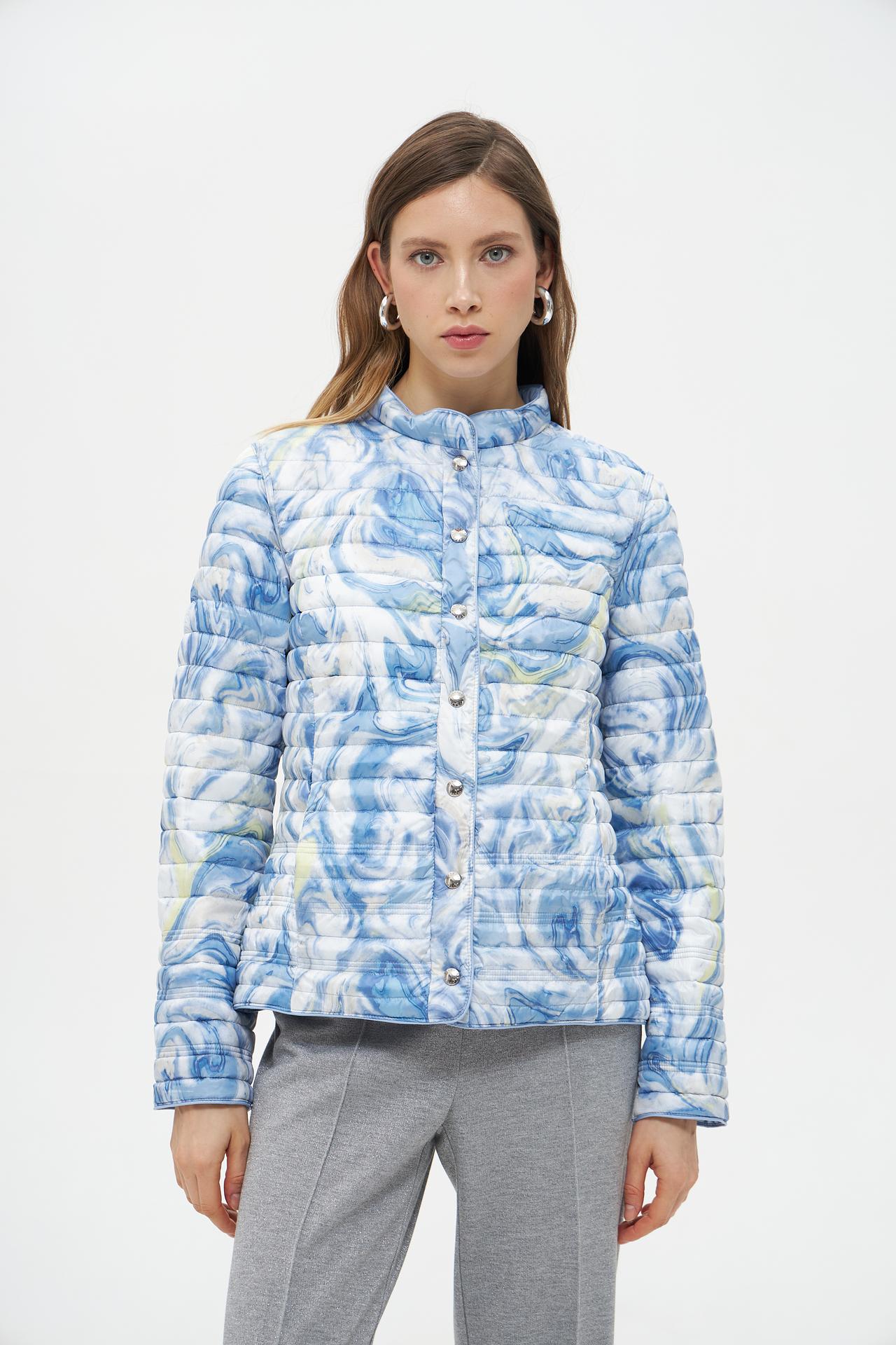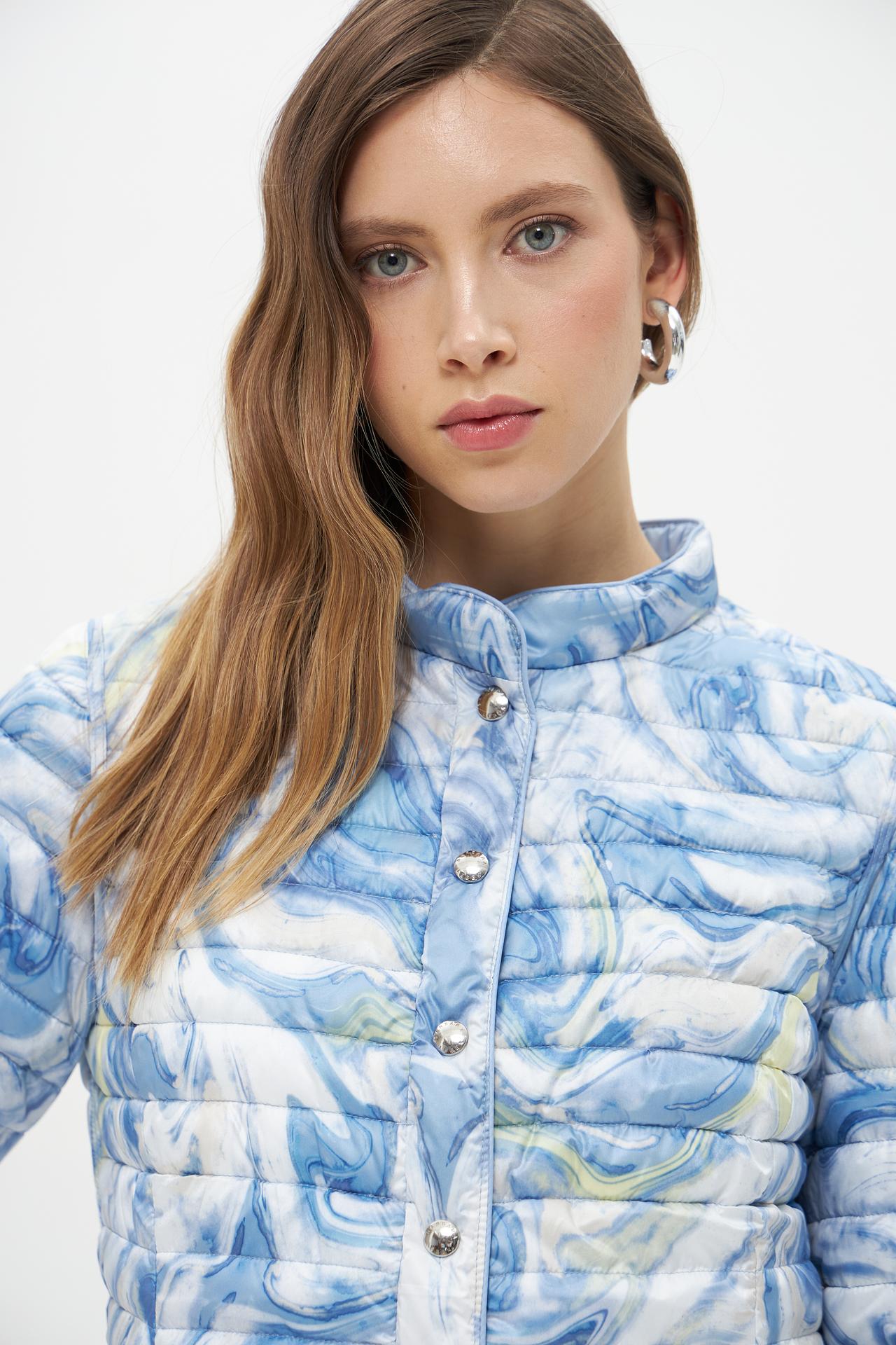 Куртка стеганая Lebek голубая с принтом, демисезонная