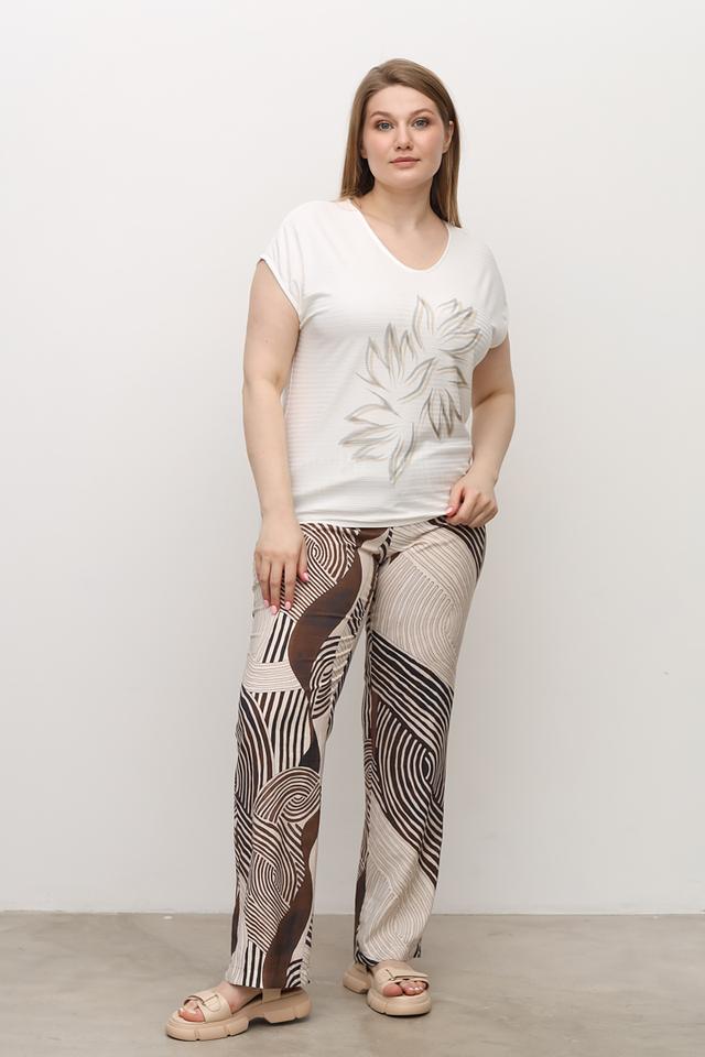 Текстура ткани слегка ребристая, что придает футболке дополнительный объем и интересную фактуру. Состав: 95% вискоза, 5% эластан. Эта футболка идеально сочетается с джинсами, брюками или юбками, позволяя создавать разнообразные и стильные образы.