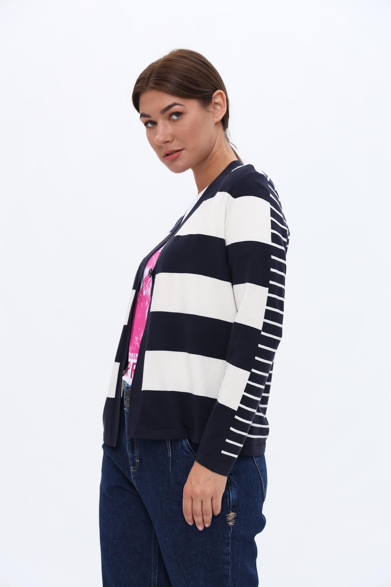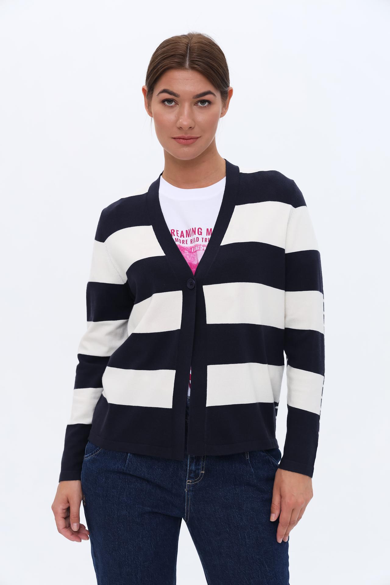- Дизайн в полоску: Классический дизайн в полоску придает кардигану стильный и современный вид, делая его универсальным элементом гардероба.