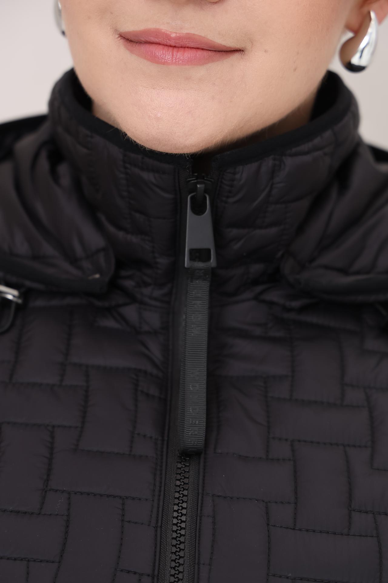 - Дизайн: Оригинальная фигурная простежка создает интересный визуальный эффект и придает изделию изысканность. Модель с капюшоном удобна и функциональна.
