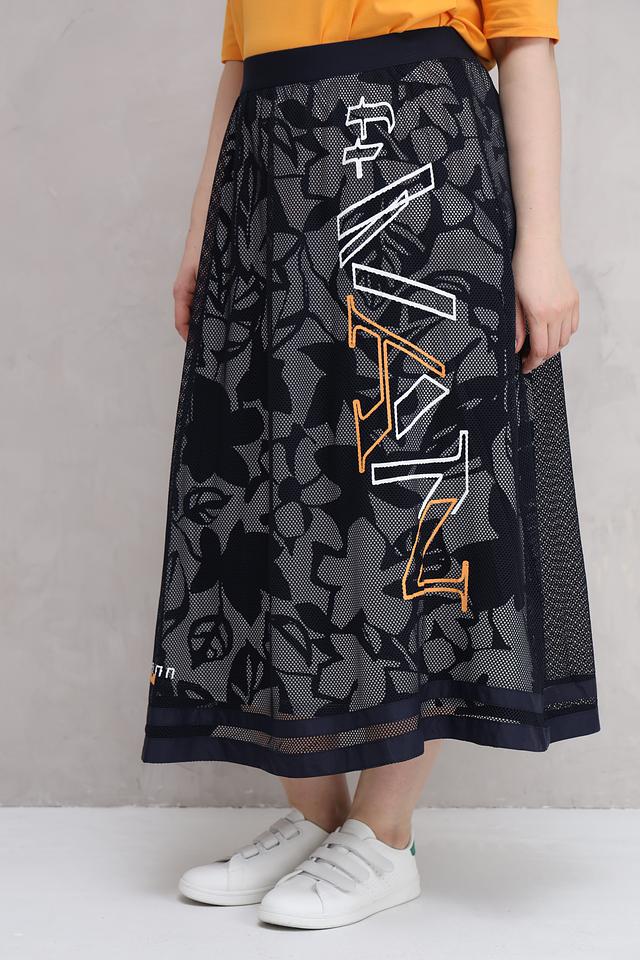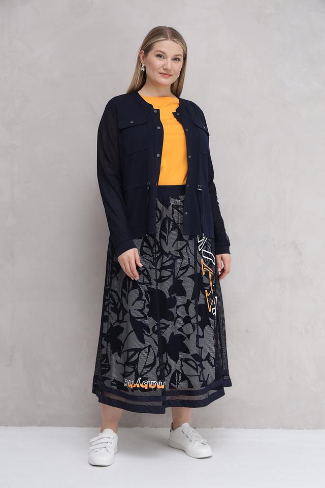 Юбка Barbara Lebek темно-синего цвета с оригинальным цветочным принтом и надписью. Модель выполнена из полиэстера и имеет длину миди, что делает ее универсальным элементом гардероба. Состав: полиэстер 100%