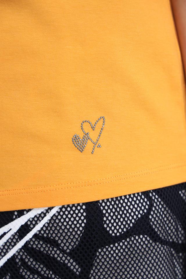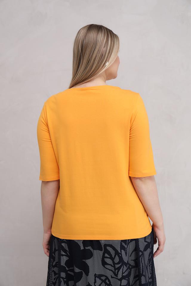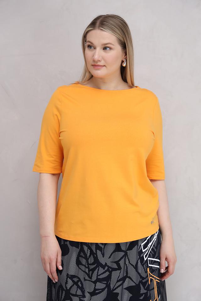 Женская футболка Barbara Lebek горчичного цвета с коротким рукавом и округлым вырезом горловины. Изготовлена из мягкого и приятного к телу сочетания хлопка и модала, обеспечивающего комфорт в носке. Состав: хлопок 47%, модал 47%, эластан 6%