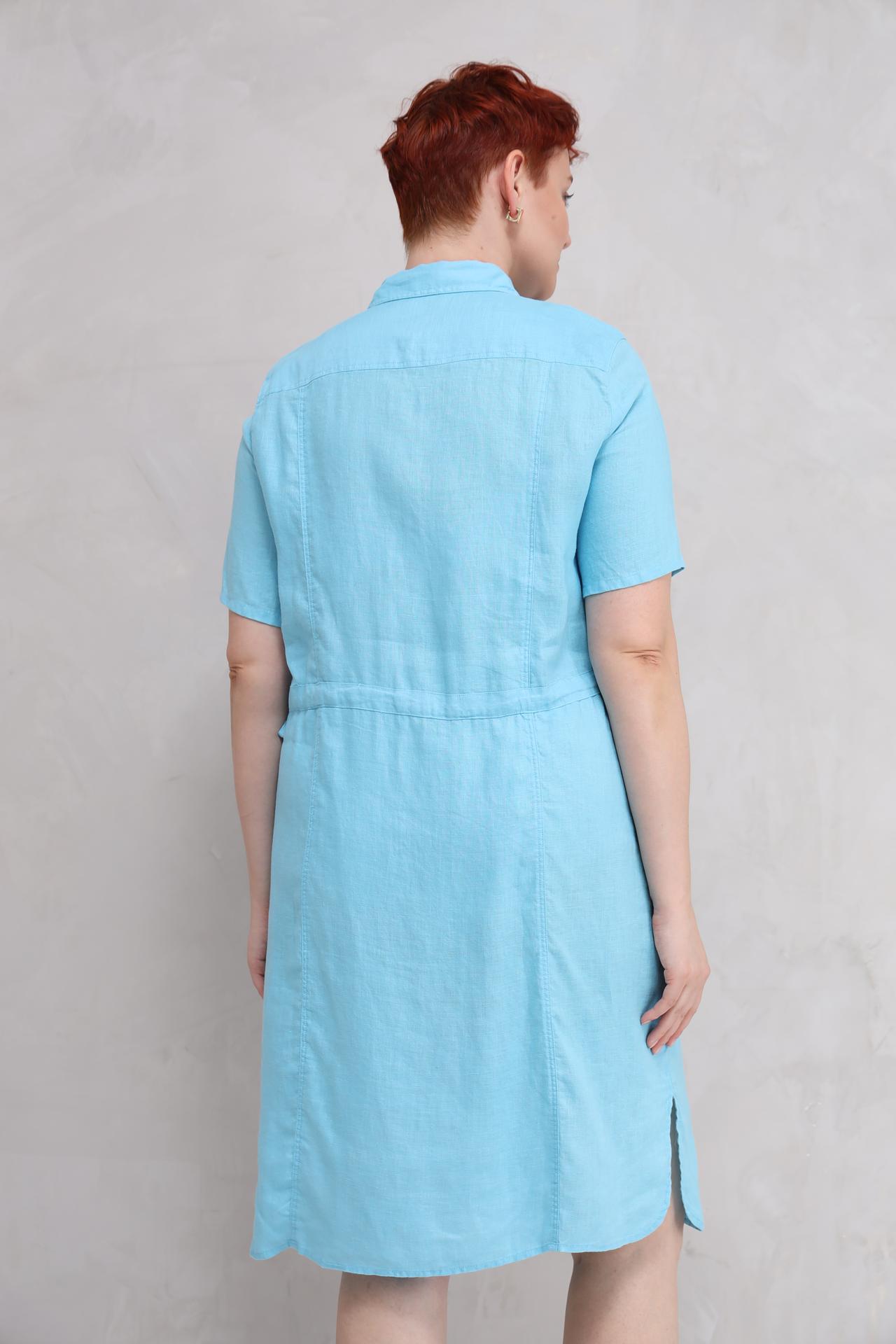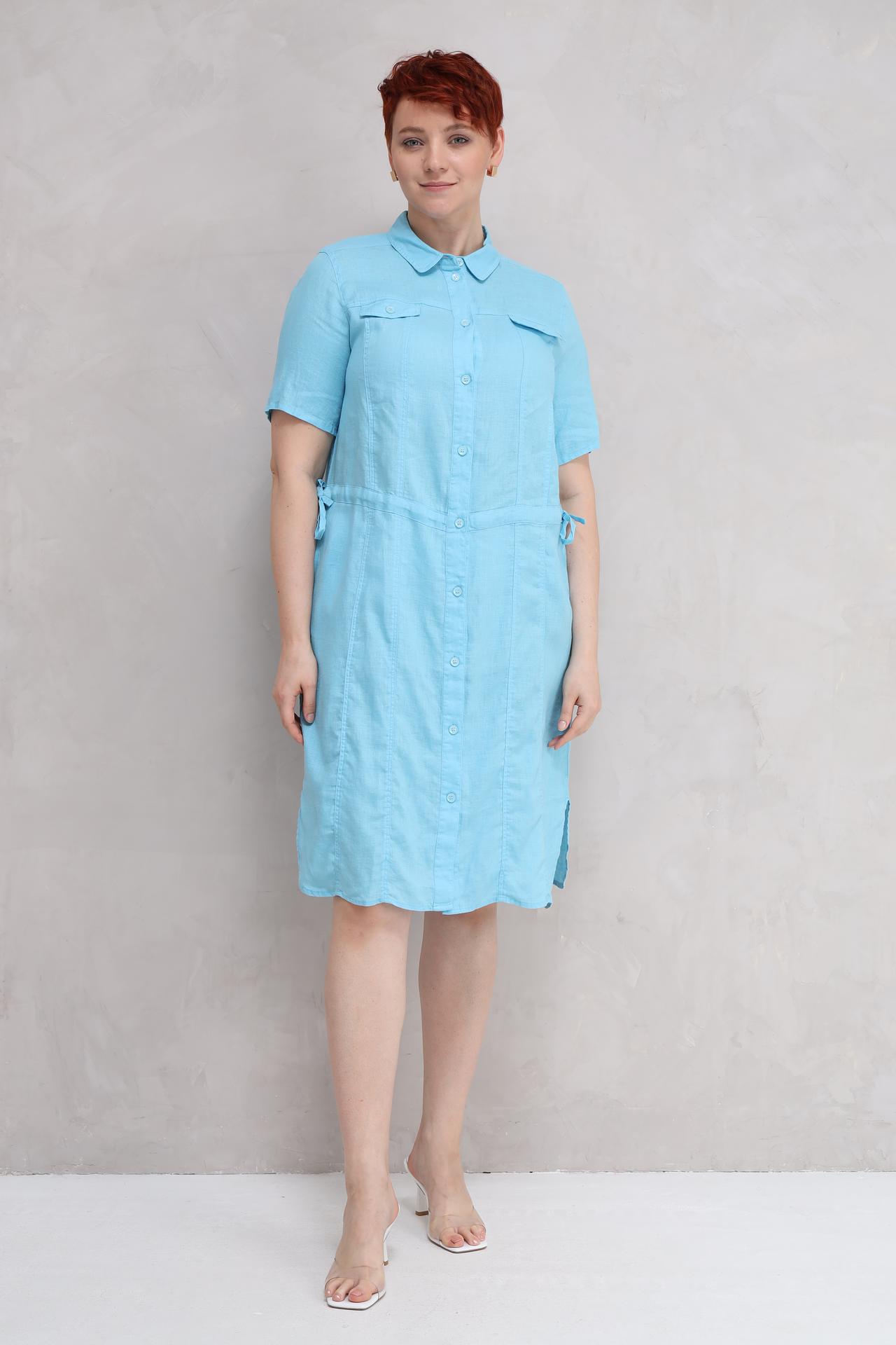 Голубое платье из льна – это универсальная вещь, которая легко сочетается с различными аксессуарами и обувью, создавая стильный и женственный образ. Подчеркните талию с помощью пояса, идущего в комплекте.
