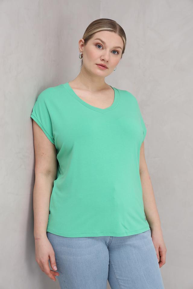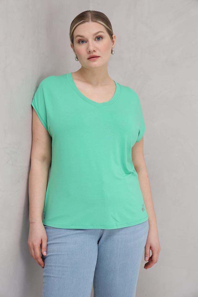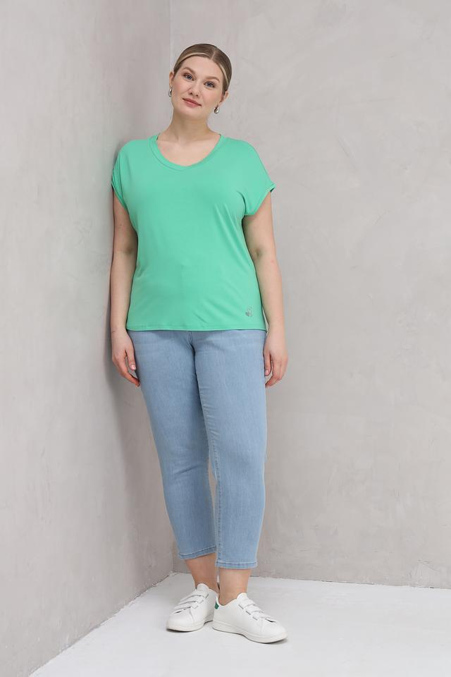 Мятный топ от Lebek — это стильная и комфортная модель с короткими рукавами. Выполнен из мягкой вискозы с добавлением эластана, обеспечивающего удобную посадку по фигуре. Идеальный выбор для создания повседневных образов. Состав: вискоза 95%, эластан 5%