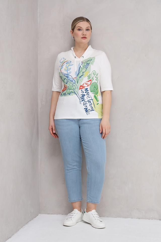 Джинсы отличаются высокой посадкой, которая визуально удлиняет ноги и подчеркивает талию. Классический пятикарманный крой обеспечивает практичность и удобство. Застёжка на молнию и пуговицу гарантирует надежную фиксацию.