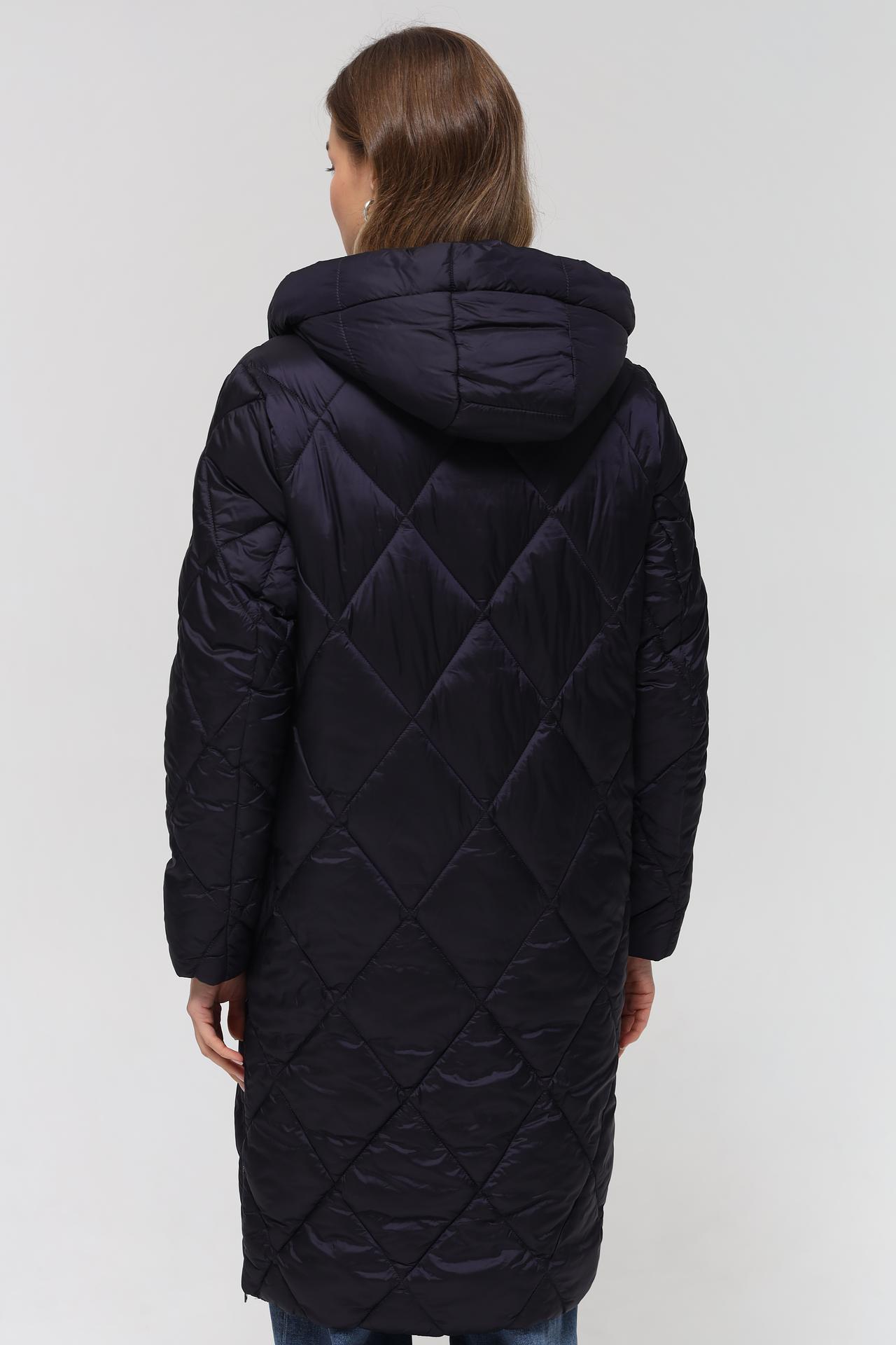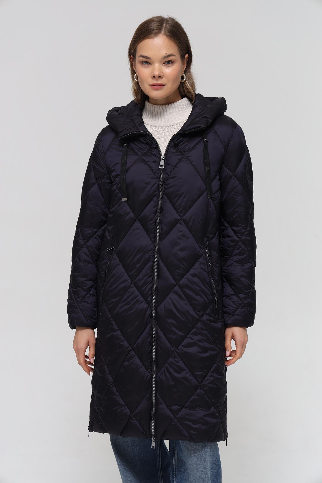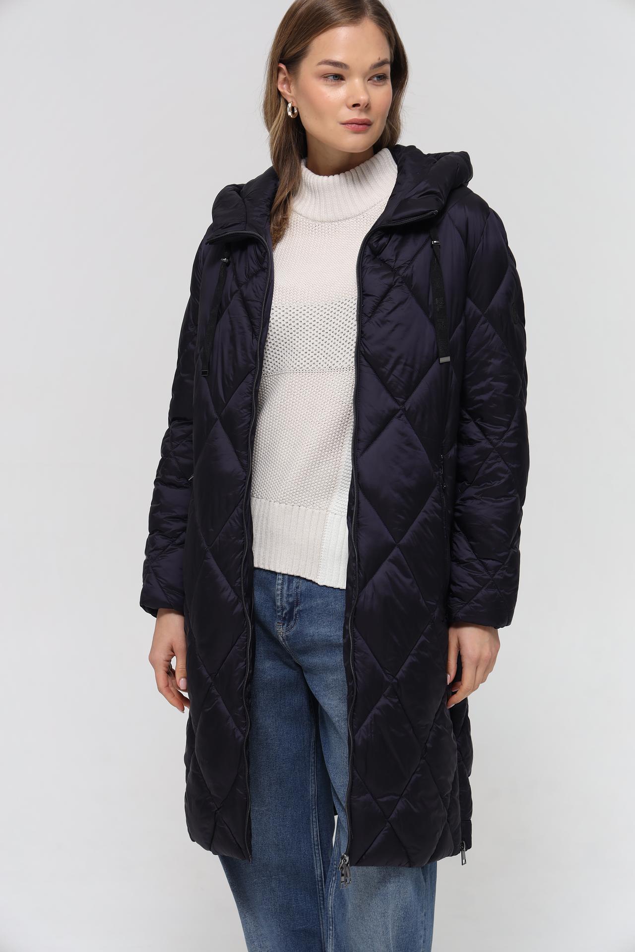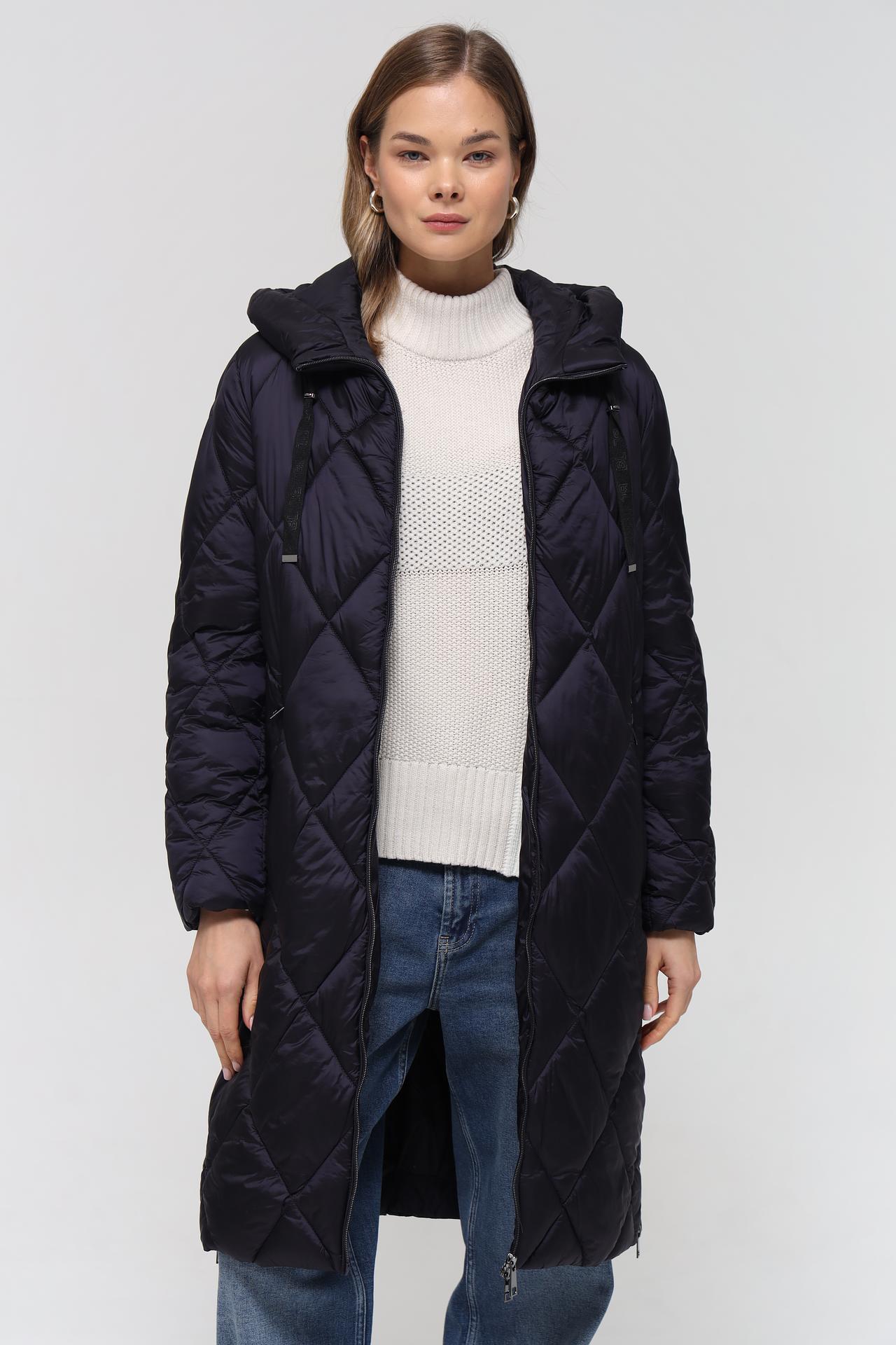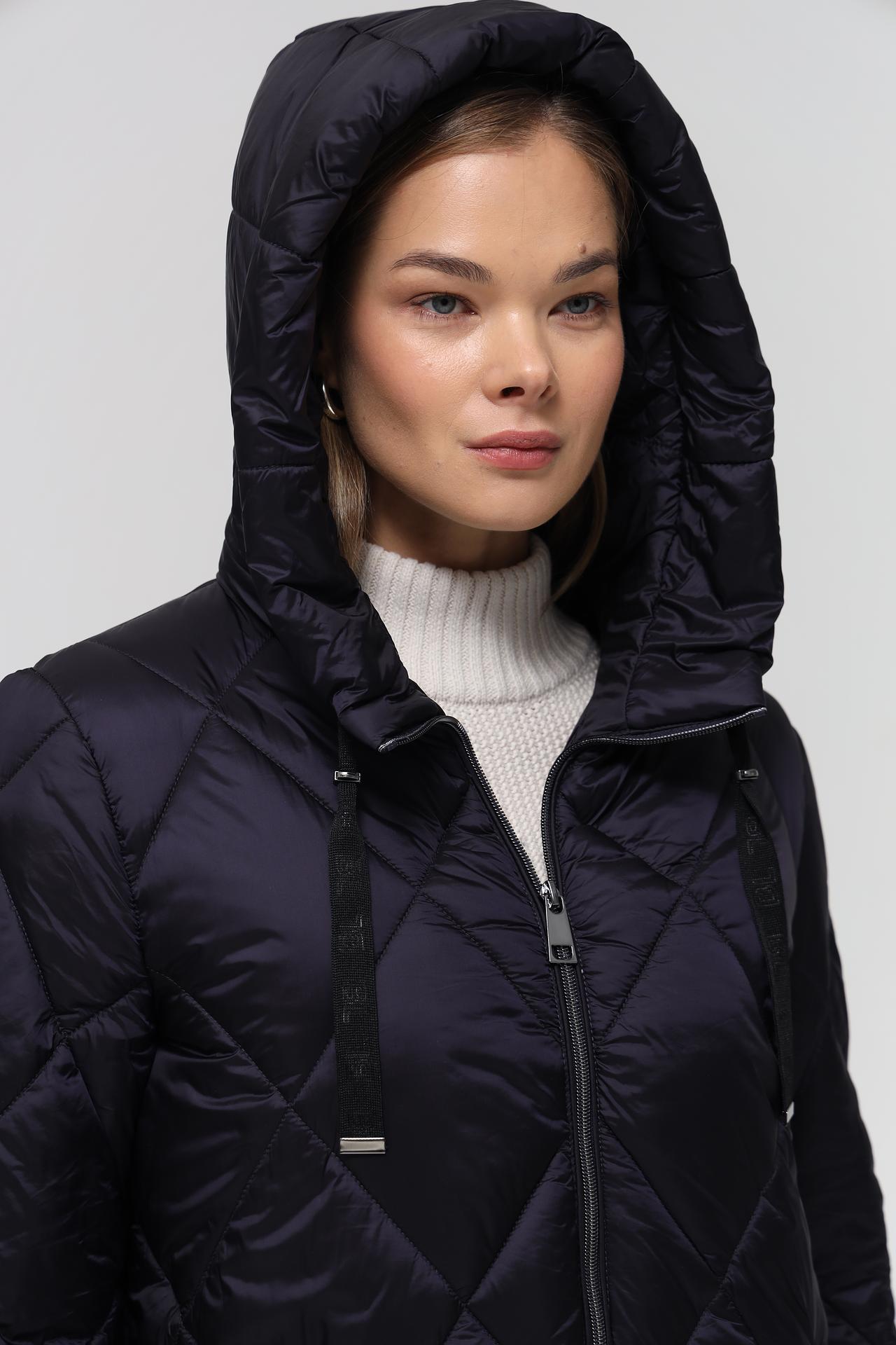 Пальто Lebek стёганое тёмно-синее с капюшоном