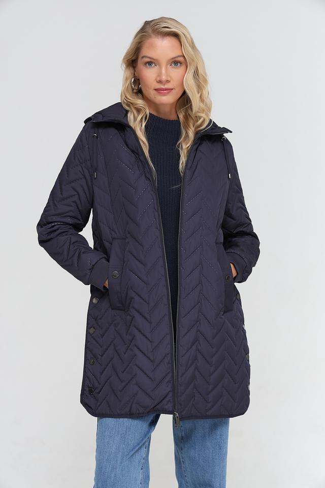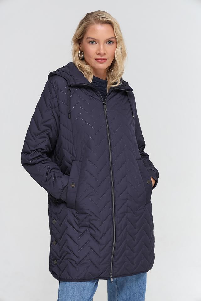 Стеганое пальто Lebek тёмно-синего цвета – это стильное и практичное решение для прохладной погоды. Изготовлено из 100% полиэстера, что обеспечивает легкость и устойчивость к влаге. Удобный капюшон и застёжка на молнию и кнопки. Состав: полиэстер 100%