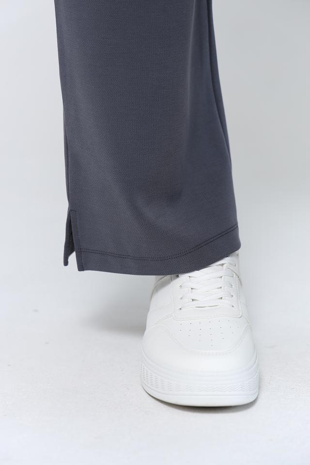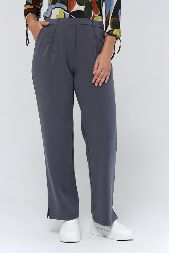 Брюки оснащены боковыми карманами, что делает их практичными и функциональными. Застежка на молнию и пуговицу обеспечивает надежную фиксацию. Универсальный серый цвет легко сочетается с различными элементами гардероба, позволяя создавать разнообразные образы.