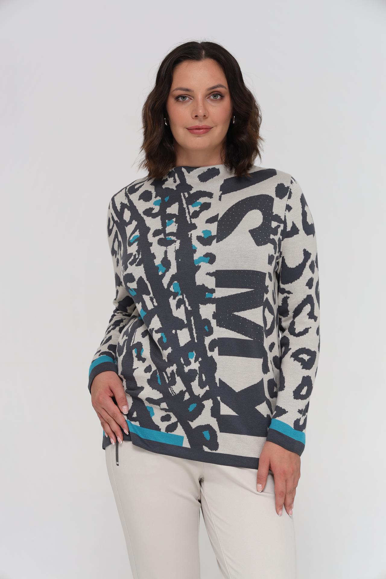 Элегантный пуловер от Lebek станет изысканным дополнением вашего гардероба. Оригинальный принт в стиле леопарда в сочетании с абстрактными элементами и надписями создает смелый и модный образ. Модель украшена мелкими стразами, добавляющими мерцания и изысканности.