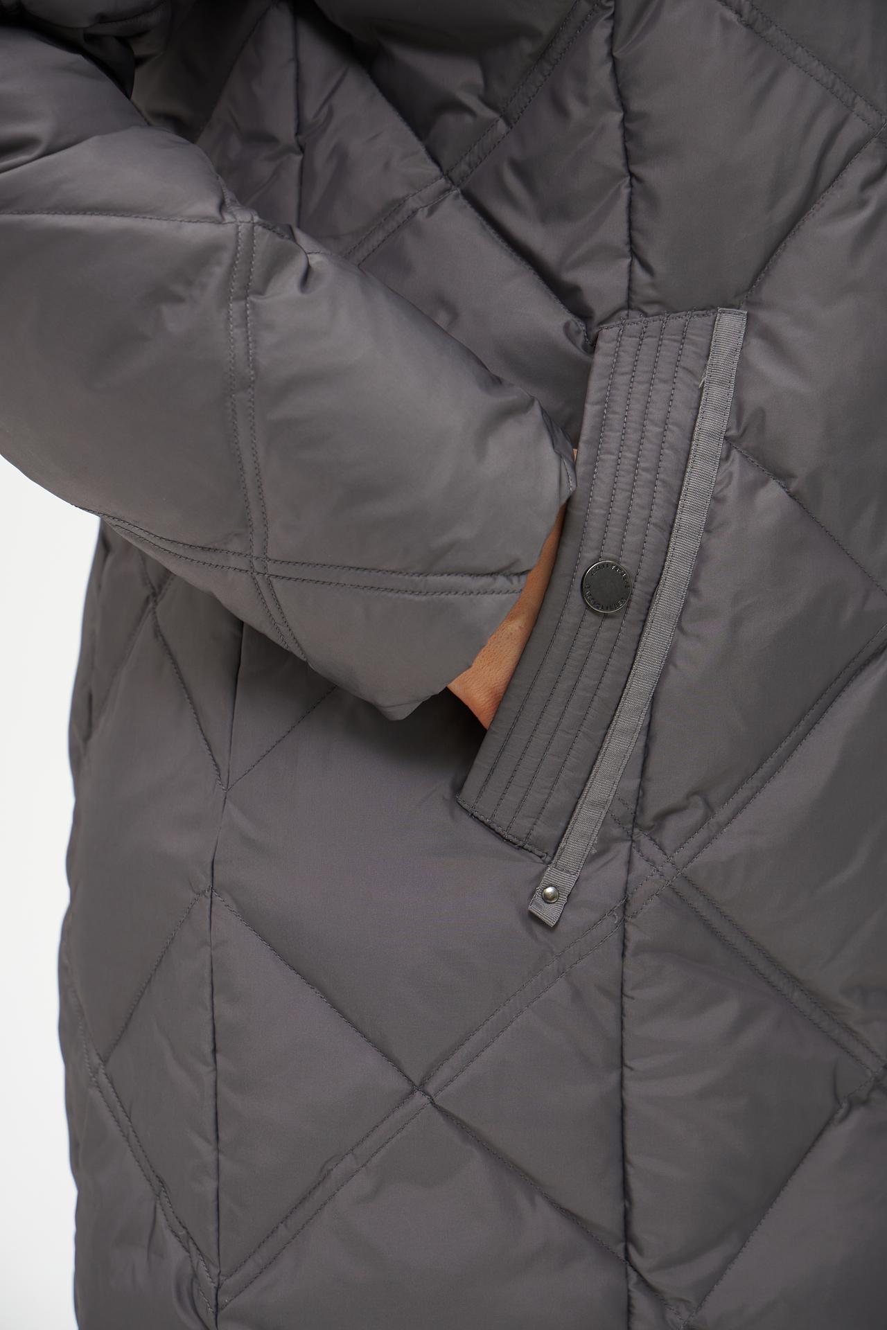 - Дизайн: Современный стеганый узор ромбами придает изделию утонченный вид. Модель дополнена капюшоном с отделкой из искусственного меха, который добавляет стильный акцент и обеспечивает дополнительное тепло.