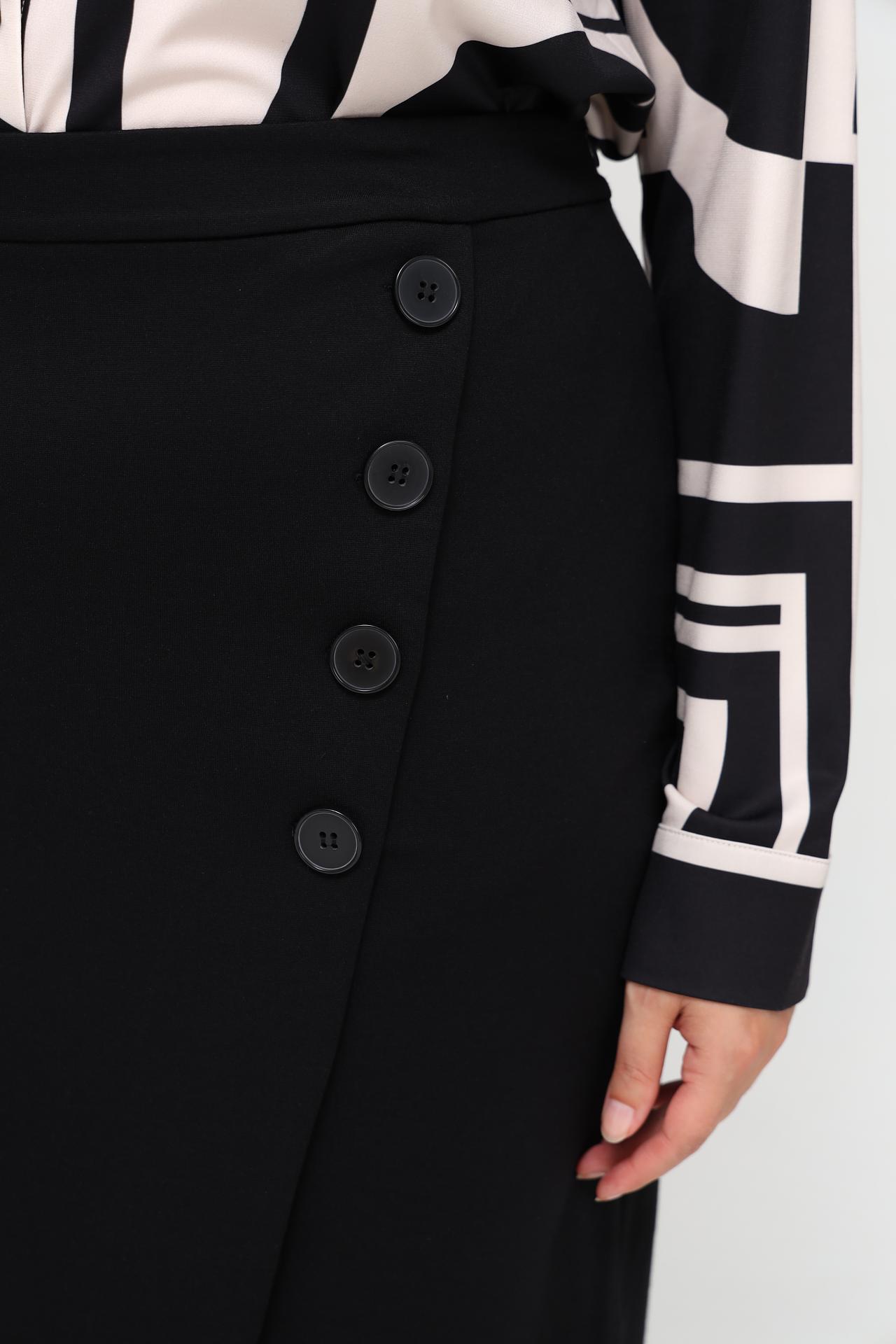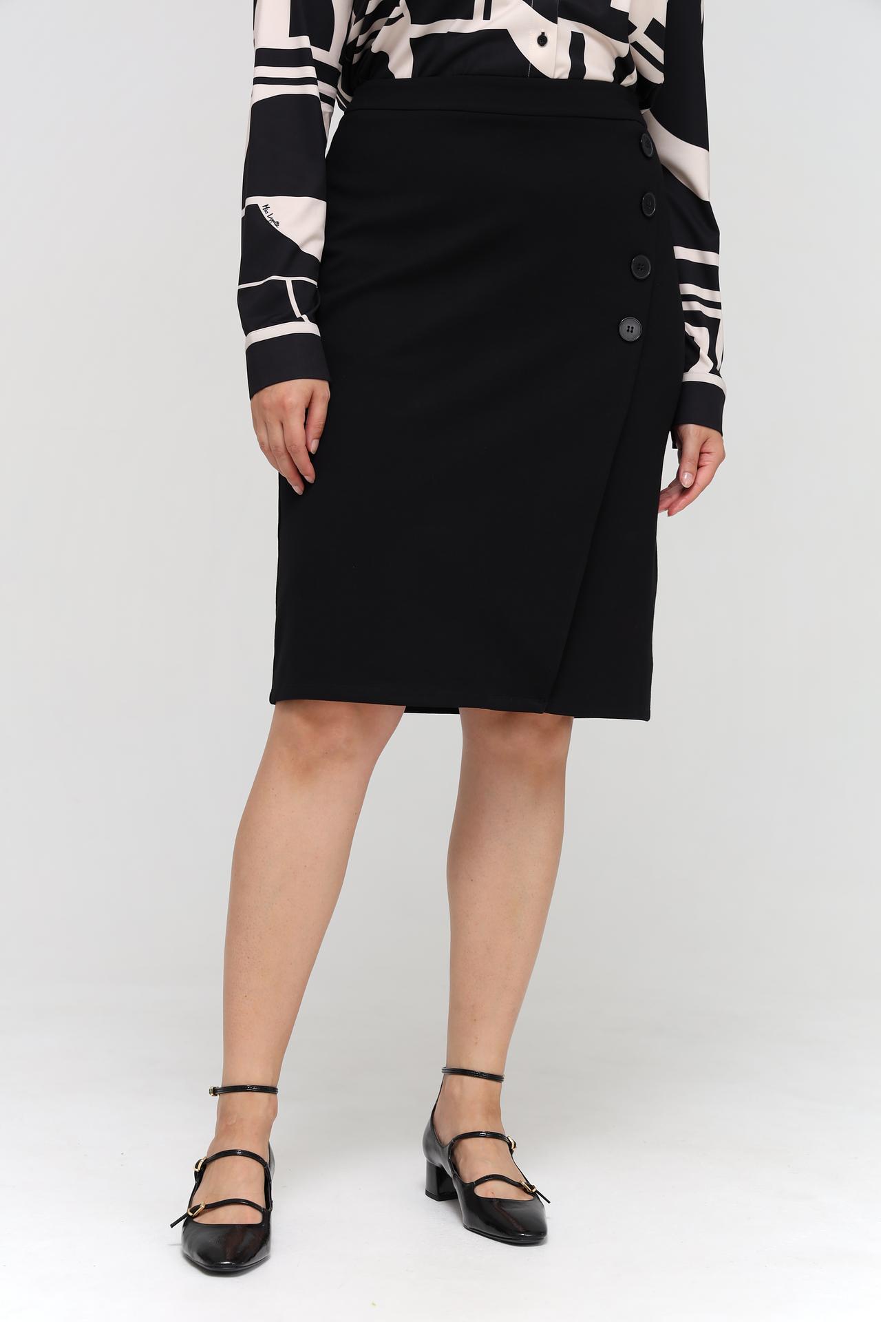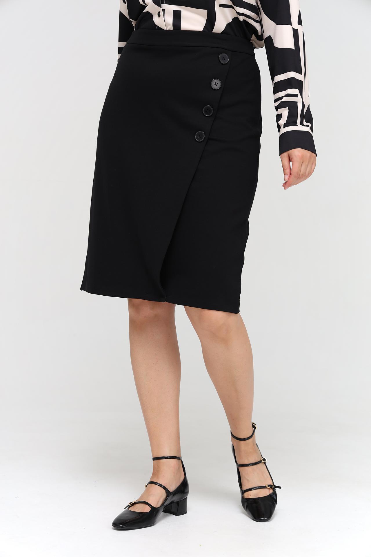 Элегантная юбка Lebek черного цвета станет универсальным дополнением вашего гардероба. Асимметричный крой с запахом и декоративные пуговицы придают модели особую изысканность, делая её идеальным выбором как для офиса, так и для вечернего выхода. Современный дизайн и высокое качество исполнения гарантируют комфорт и безупречный внешний вид на протяжении всего дня. Эта юбка - отличная база для создания множества стильных образов.