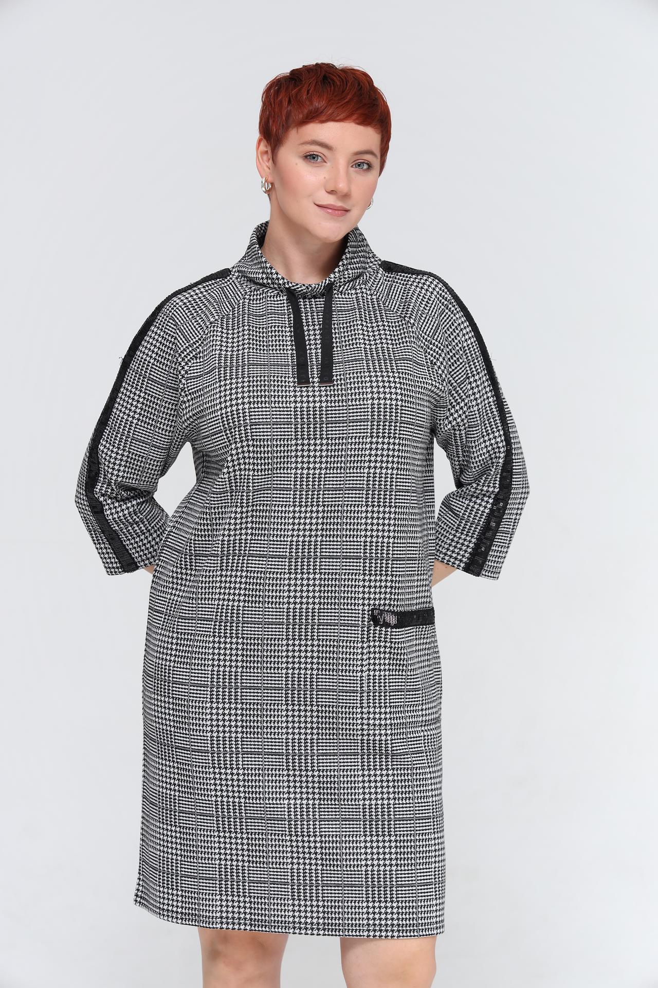 Элегантное платье Lebek станет основой вашего повседневного и вечернего гардероба. Модель выполнена в классической черно-белой клетке «принц Уэльский», которая никогда не выходит из моды. Актуальный прямой крой обеспечивает свободу движений и комфорт в течение всего дня. Оригинальные детали, такие как контрастные лампасы с пайетками на рукавах и небольшой нагрудный карман с отделкой из эко-кожи, придают образу современный вид.