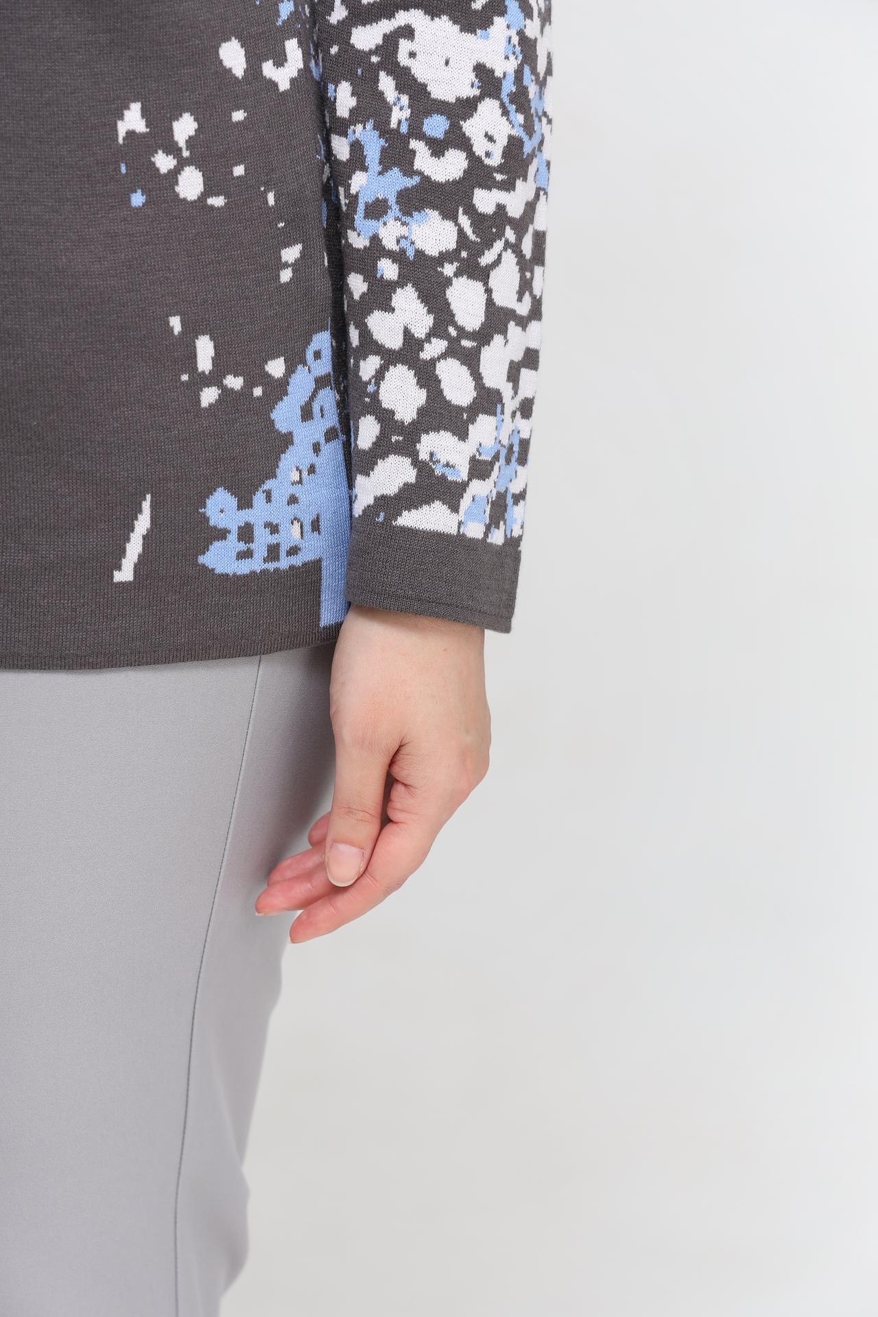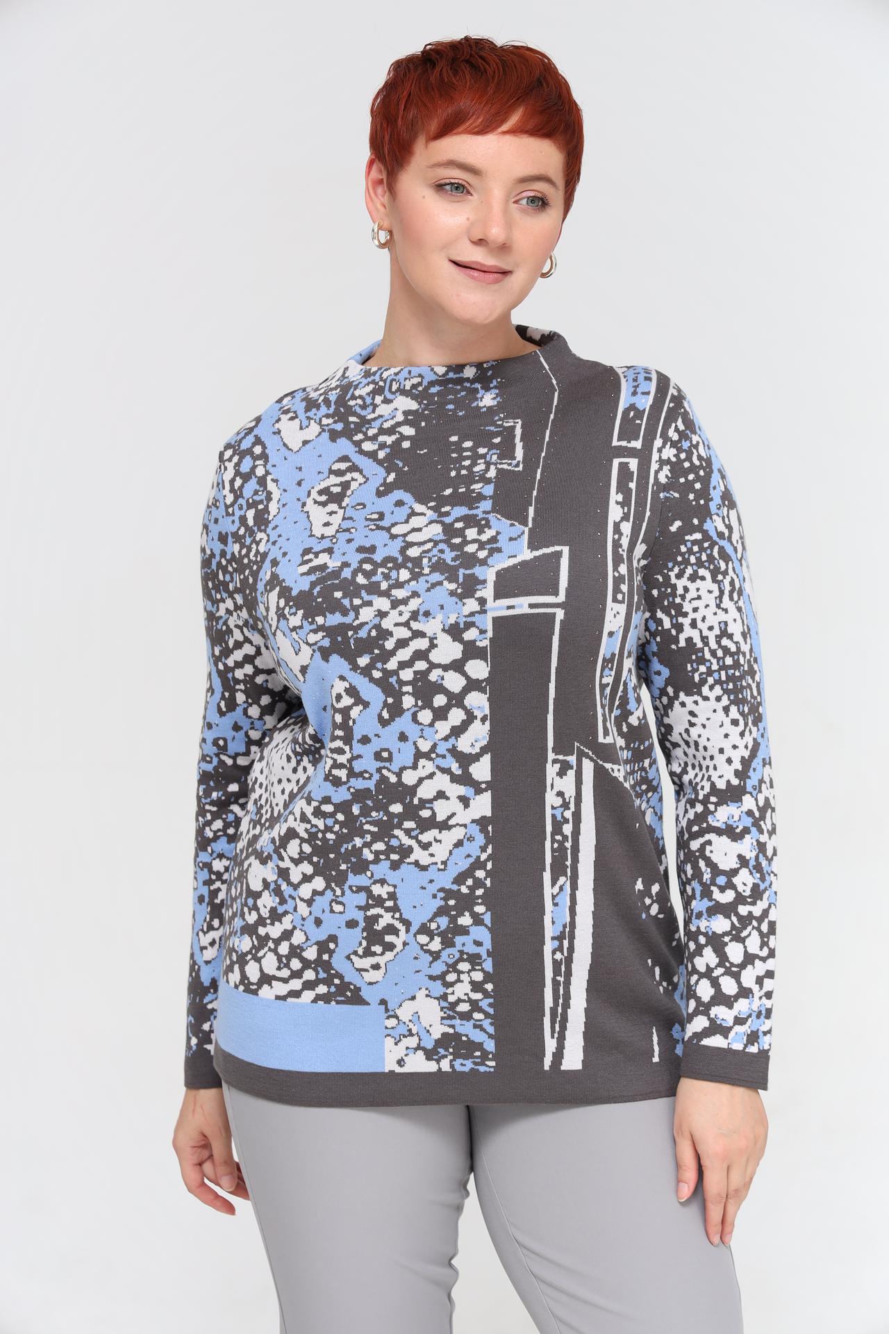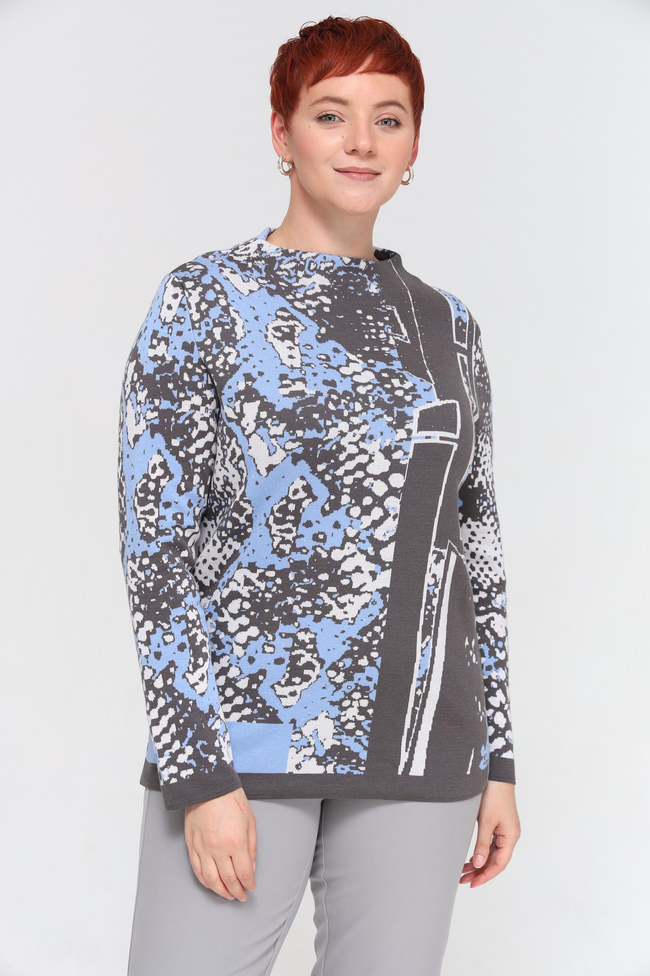 - Дизайн: Современный крой и оригинальный принт делают пуловер стильным элементом гардероба. Абстрактный узор в серых, голубых и белых тонах выглядит эффектно и актуально.