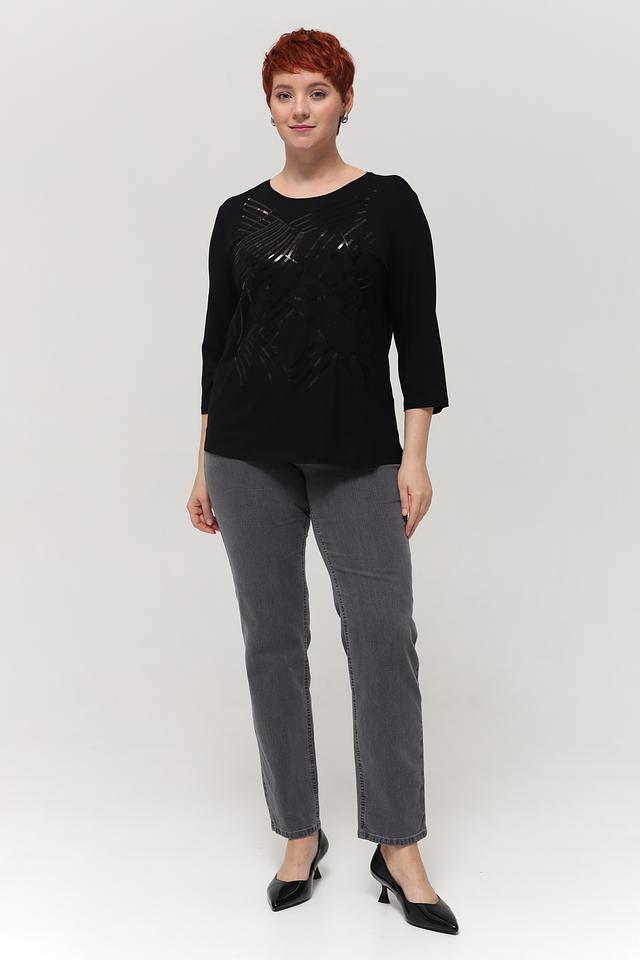 Чёрная футболка Lebek из вискозы с оригинальным геометрическим узором. Модель с рукавом 3/4 и округлым вырезом горловины. Состав: 95% вискоза, 5% эластан. Состав: вискоза 95%, эластан 5%