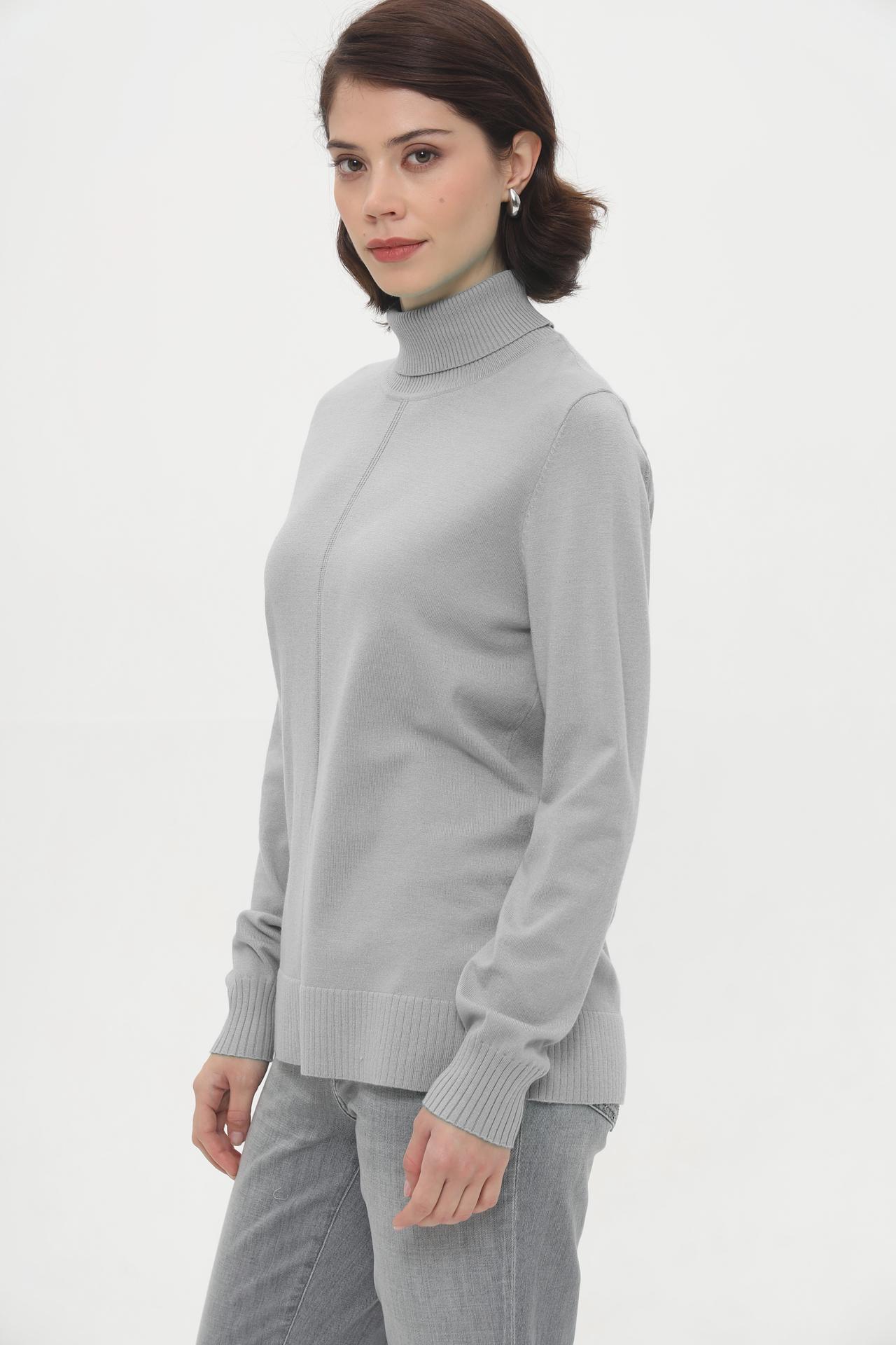 - Дизайн: Классическая водолазка с высоким воротником и вертикальной декоративной строчкой. Минималистичный стиль подходит для создания как строгих, так и расслабленных образов.