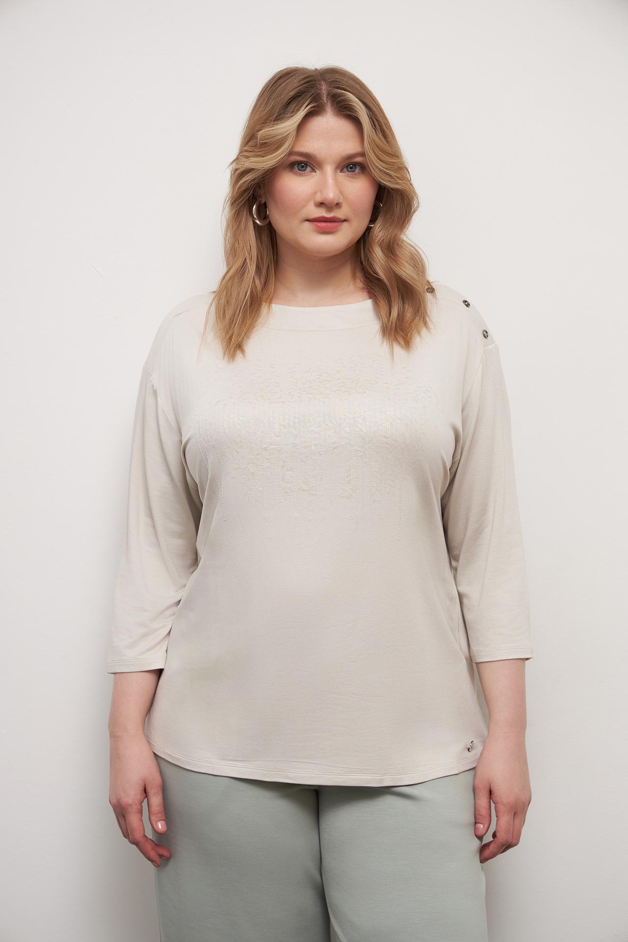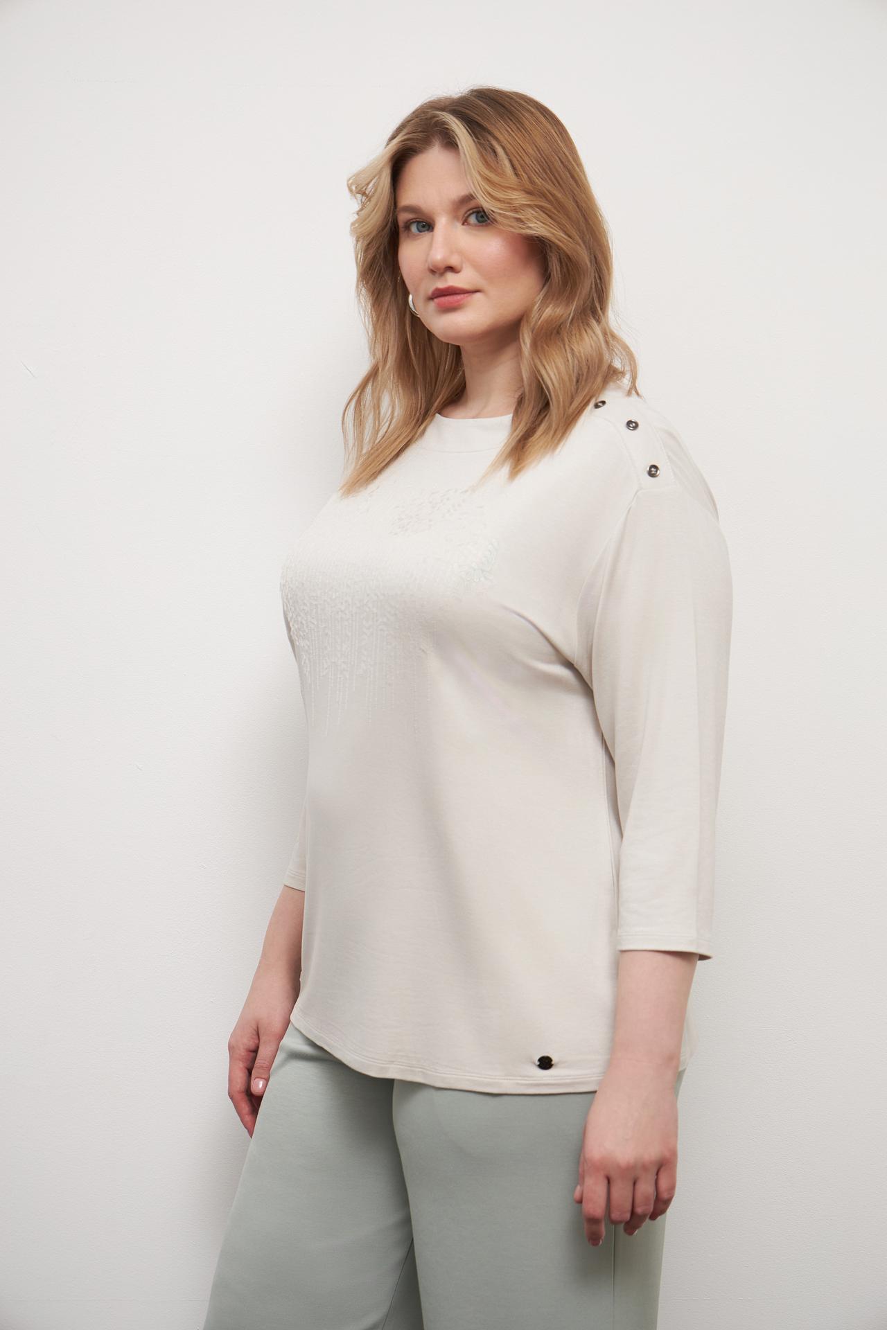 - Декоративные элементы: Лонгслив украшен пуговицами на плечах и неброским узором спереди, придающими изделию изысканность.
