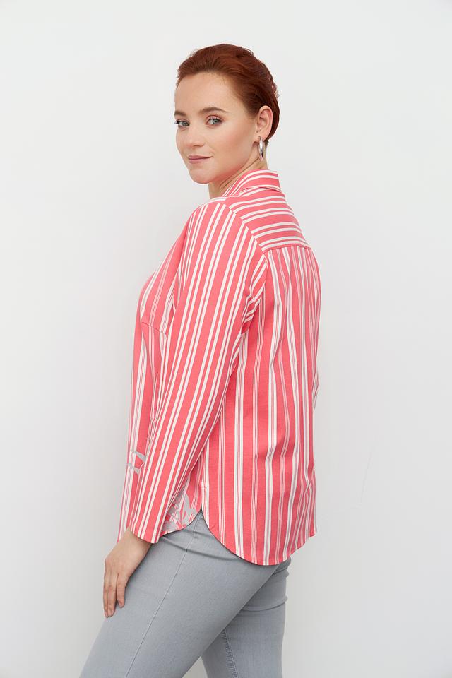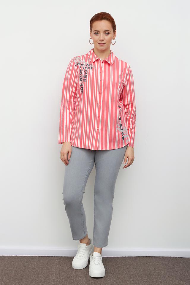 - Дизайн. Блузка выполнена в полоску, что добавляет образу свежести и легкости.