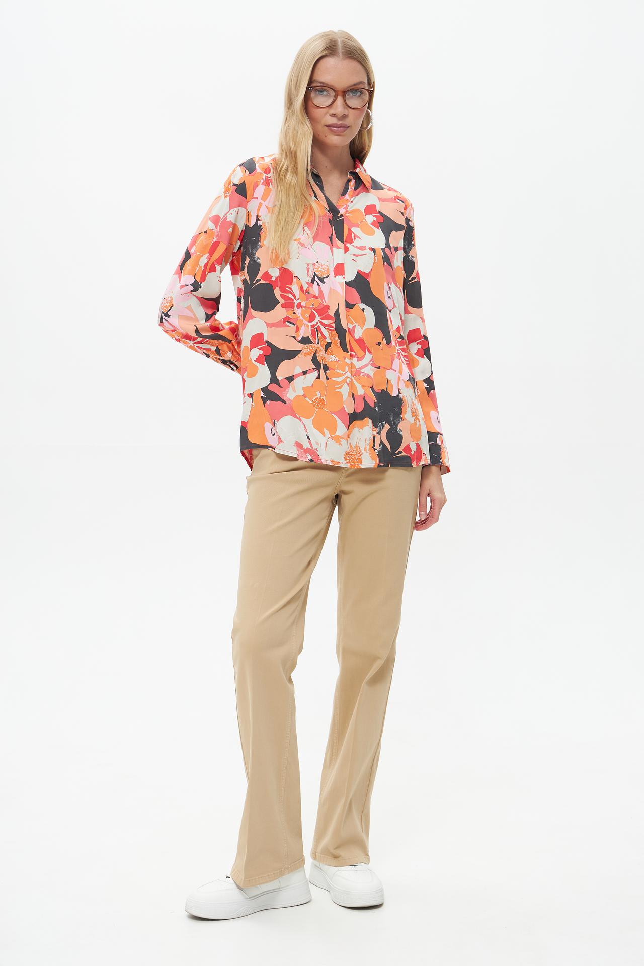 - Яркий цветочный принт: Оригинальный рисунок привлекает внимание и позволяет создать неповторимый образ.