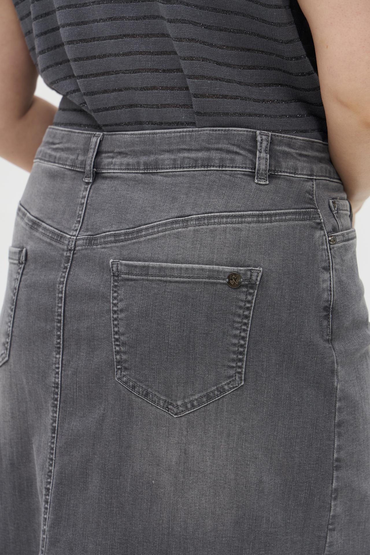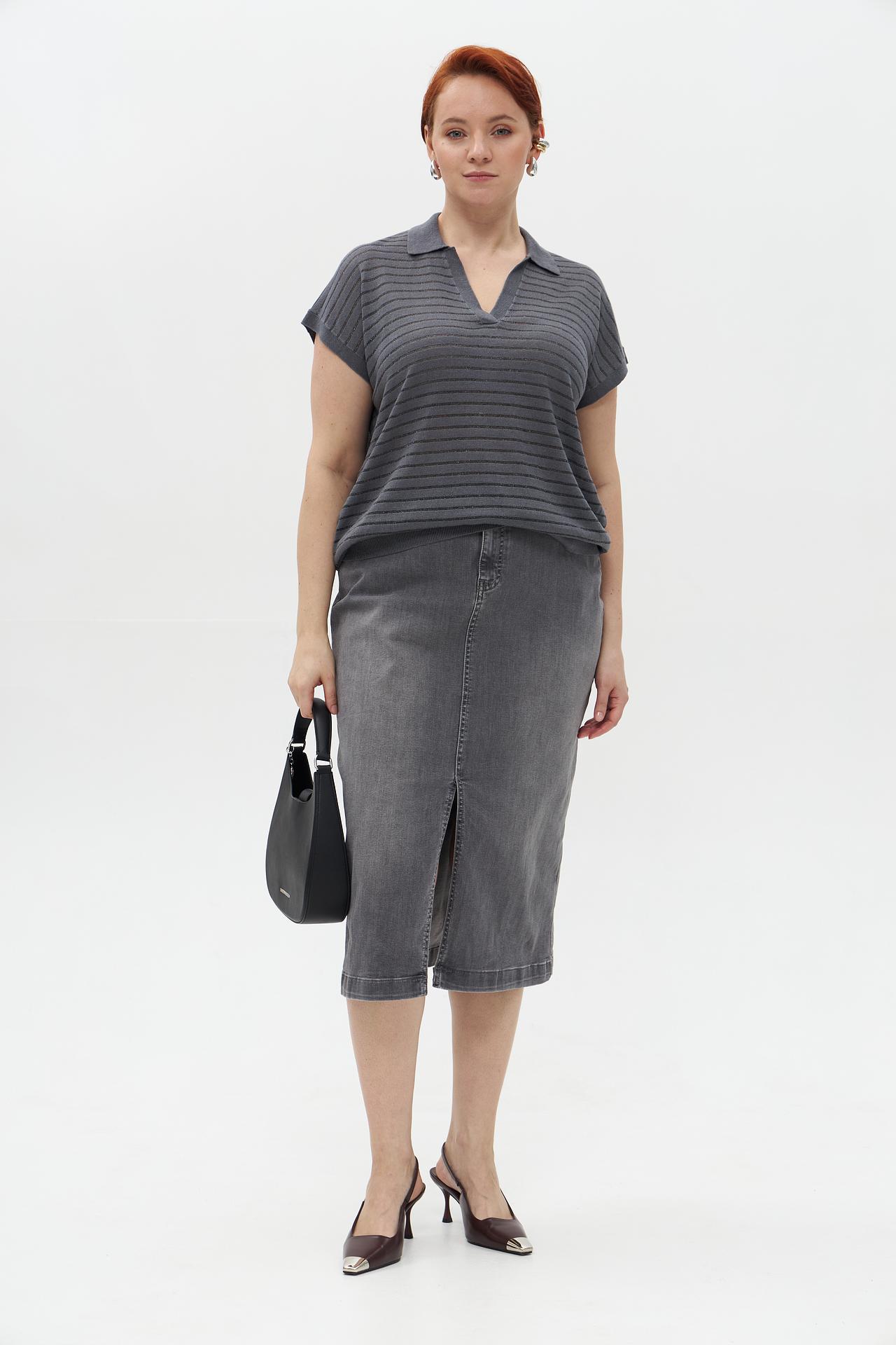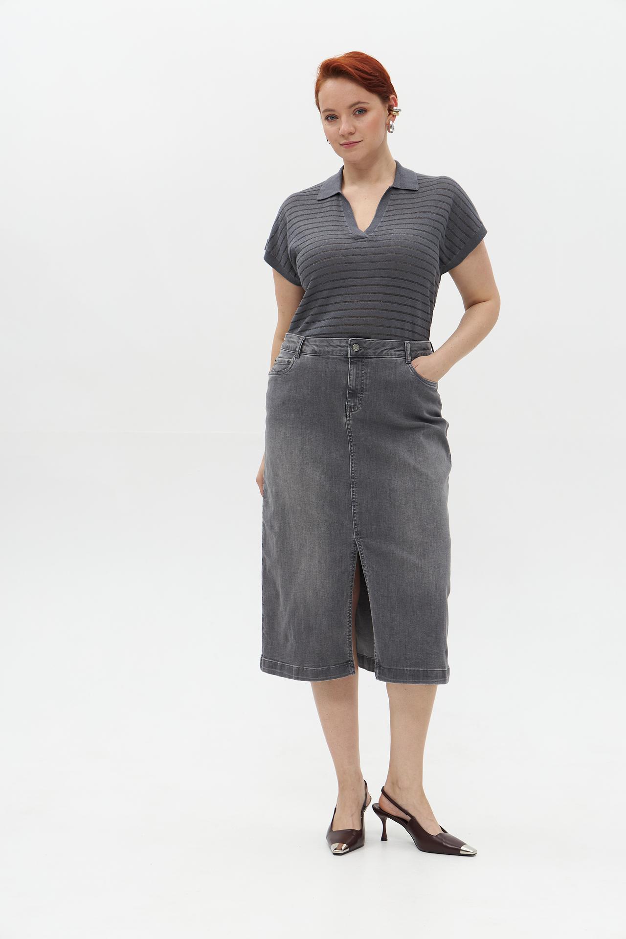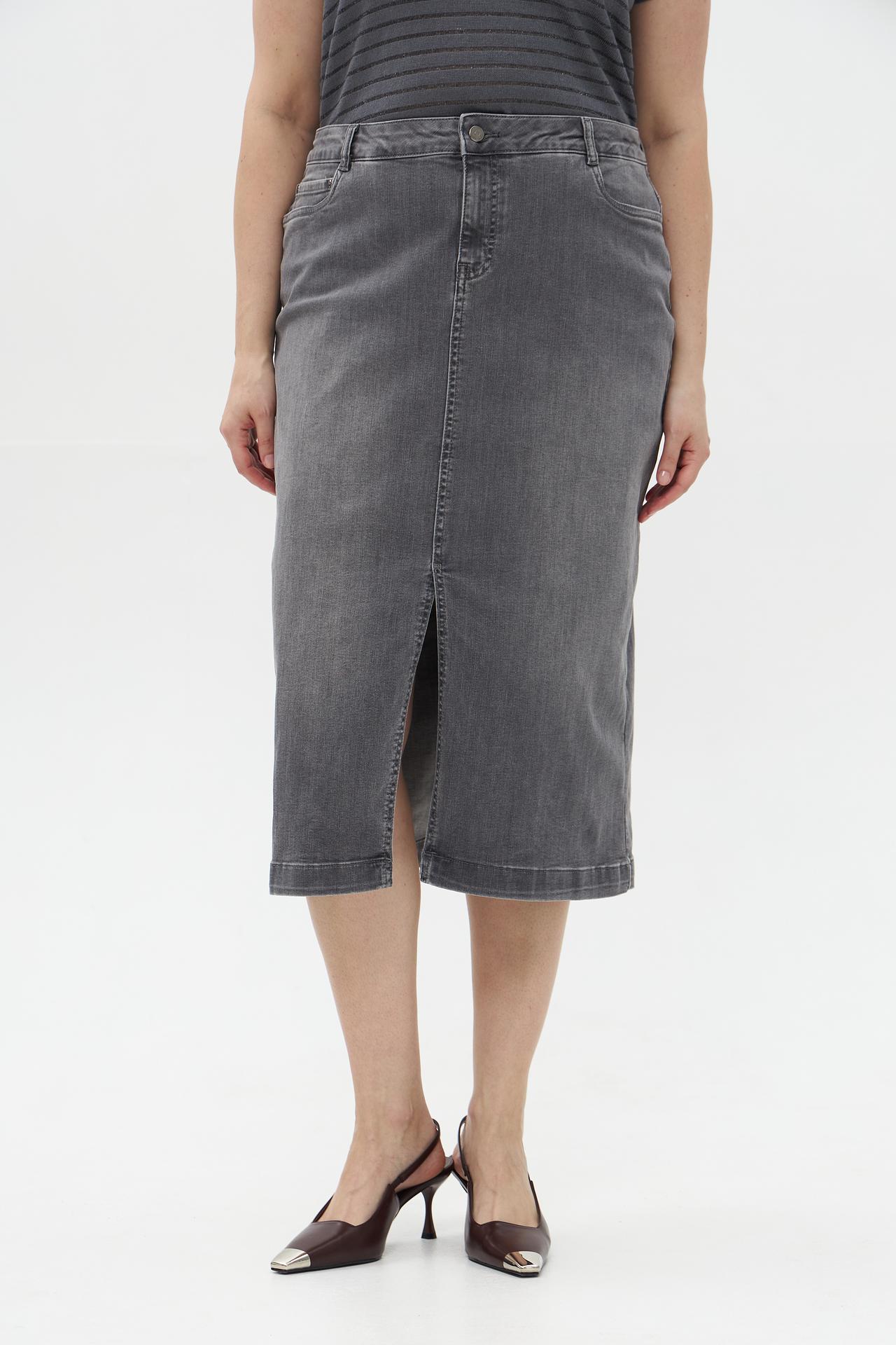 Элегантная джинсовая юбка от Lebek – идеальный выбор для создания стильных и комфортных образов. Классический крой миди с разрезом спереди придает современный вид, а универсальный серый цвет легко сочетается с любым верхом.