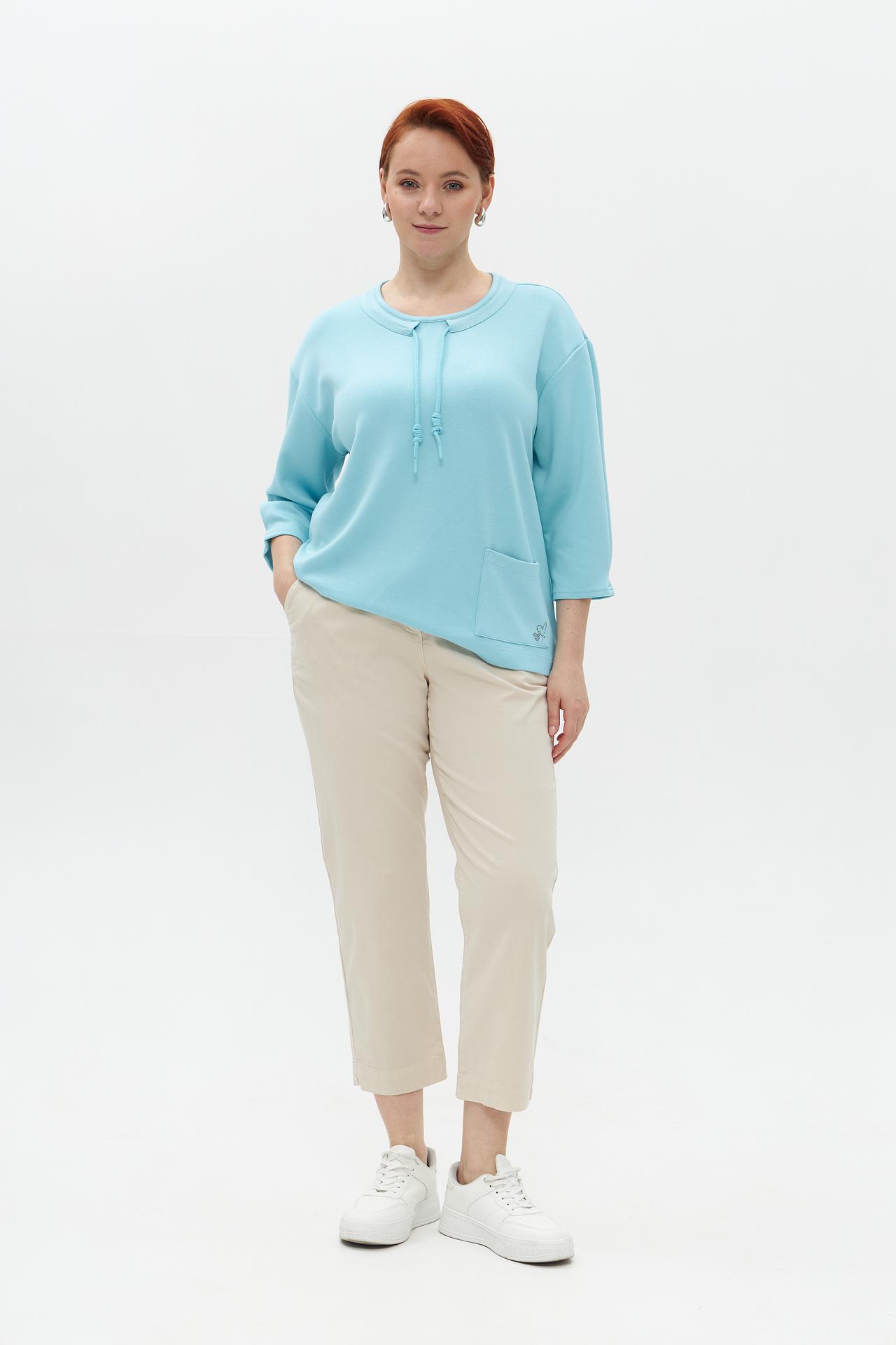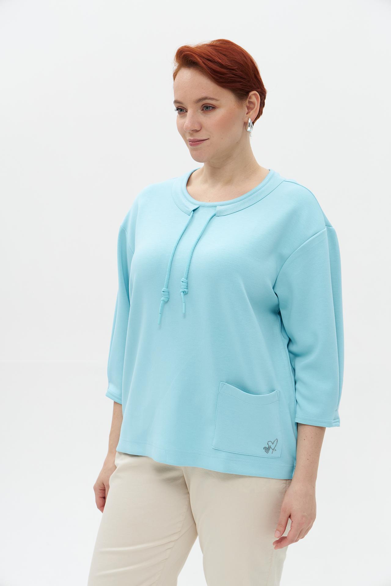 Пуловер Lebek голубой с декоративными завязками и карманом
