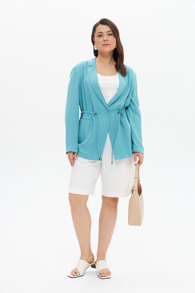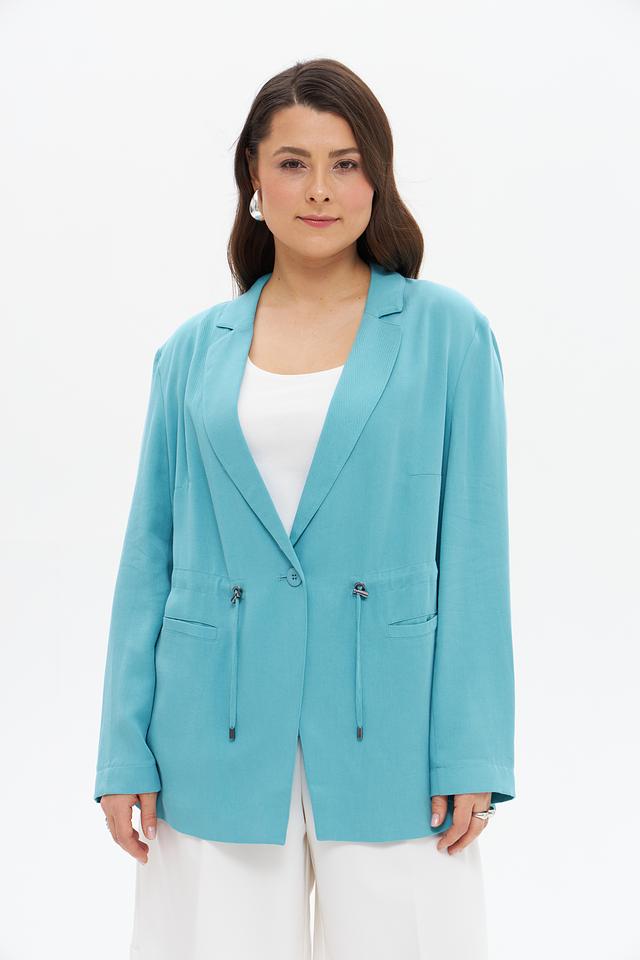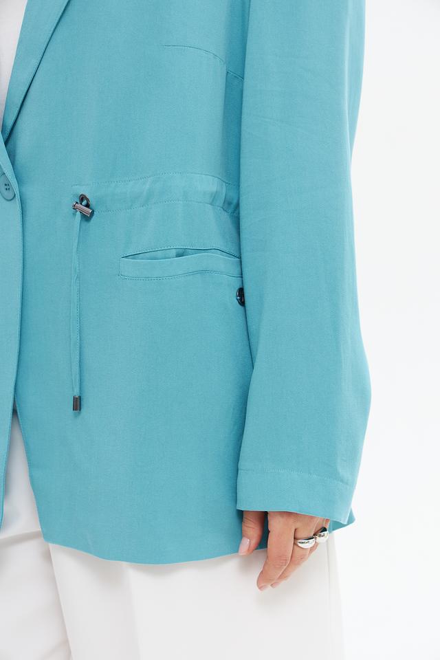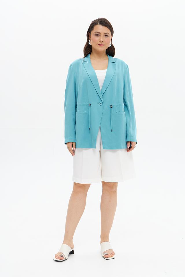Бирюзовый жакет Barbara Lebek – стильное и комфортное решение для создания модных образов. Модель прямого кроя с лацканами и боковыми карманами дополнена кулисками по бокам, что позволяет регулировать силуэт. Жакет выполнен из 100% лиоцела. Состав: лиоцел 100%