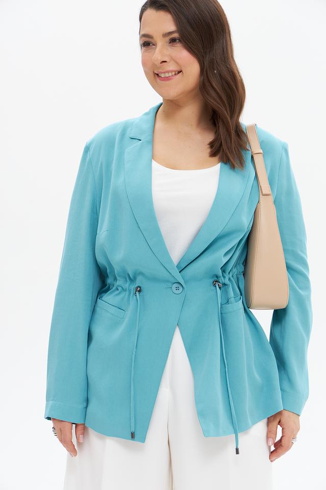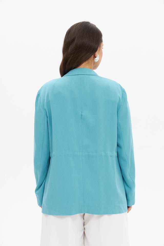 Особенностью данной модели являются кулиски по бокам, которые позволяют регулировать прилегание жакета по фигуре, создавая более женственный или расслабленный силуэт. Жакет изготовлен из высококачественного лиоцела – экологичного и приятного к телу материала.