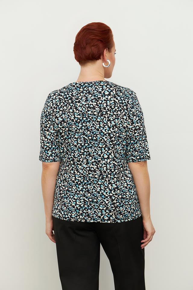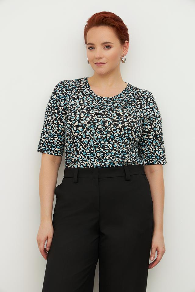 Женская футболка Lebek с оригинальным цветочным принтом. Изготовлена из мягкой вискозы с добавлением эластана для комфорта и хорошей посадки. Состав: вискоза 92%, эластан 8%