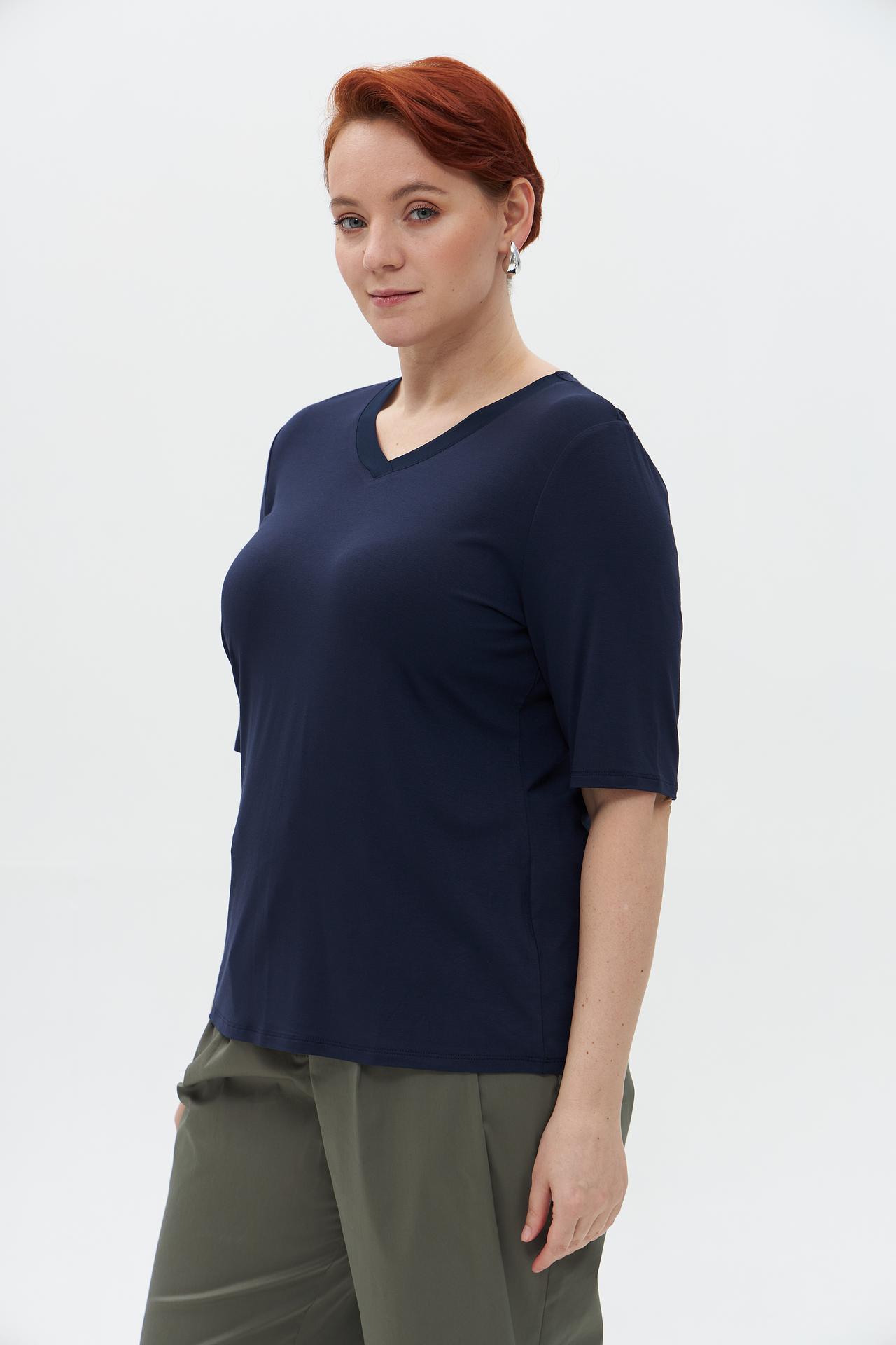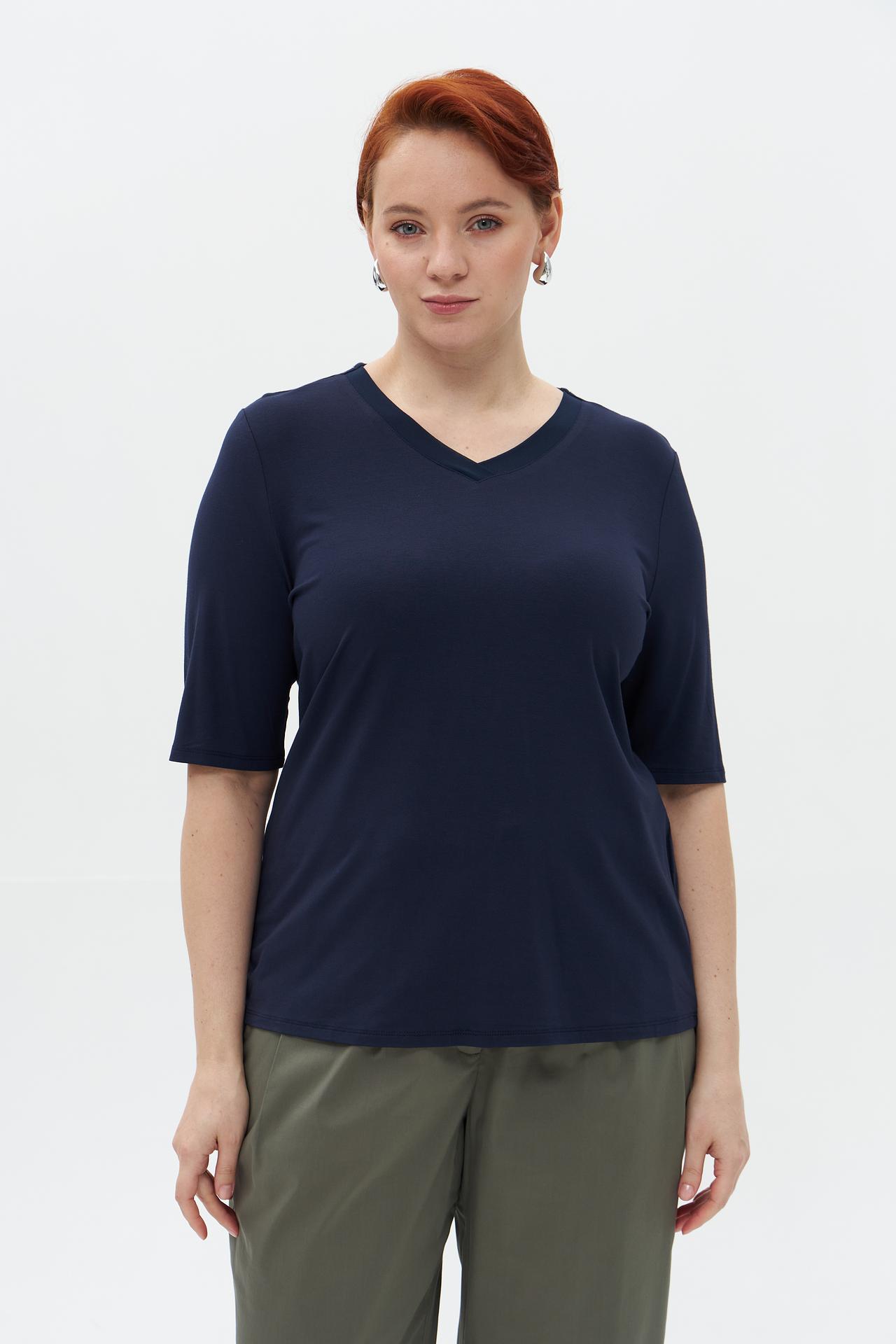Футболка Lebek синяя с V-образным вырезом