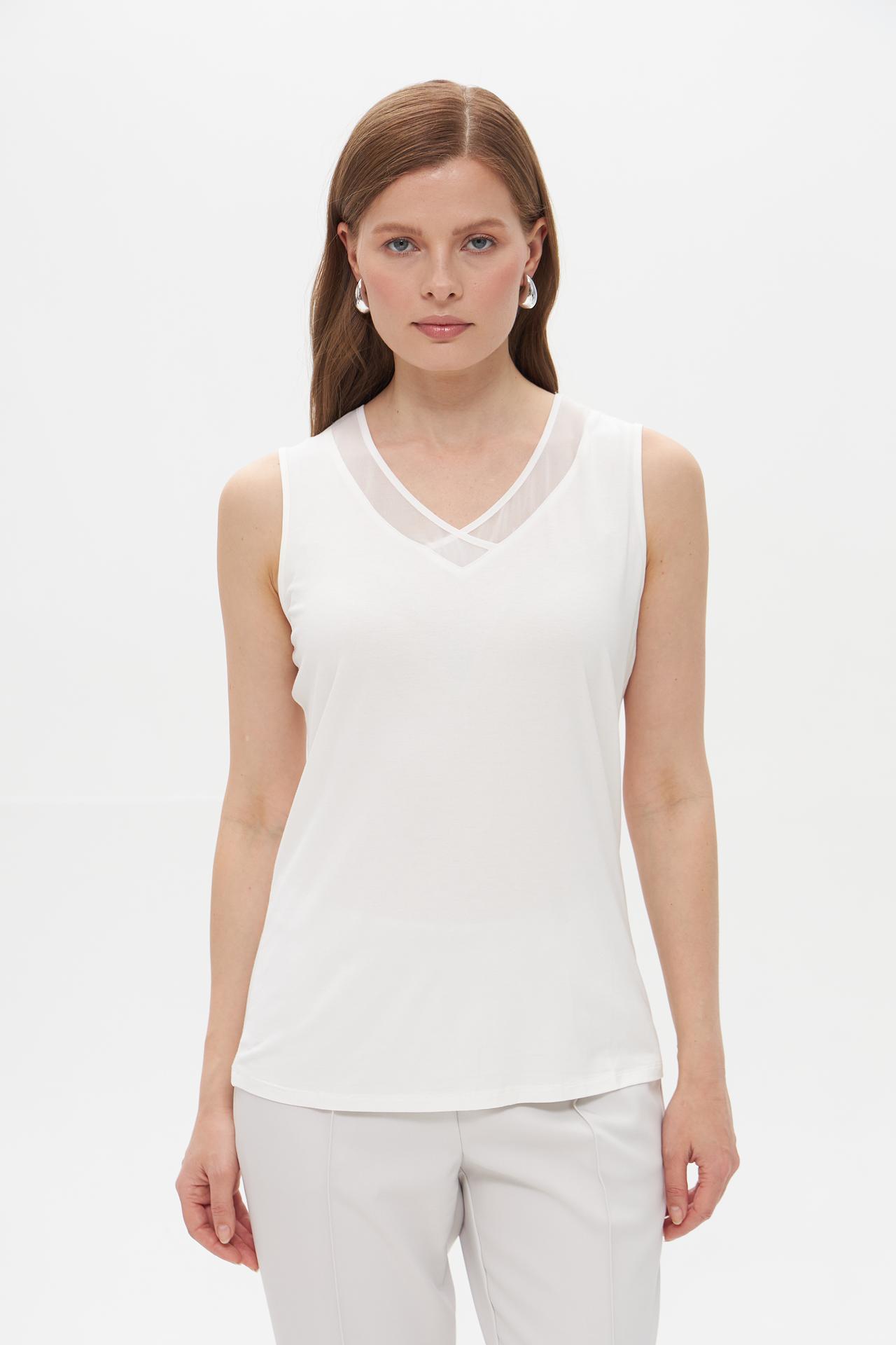 Белый топ Lebek с сетчатой вставкой
