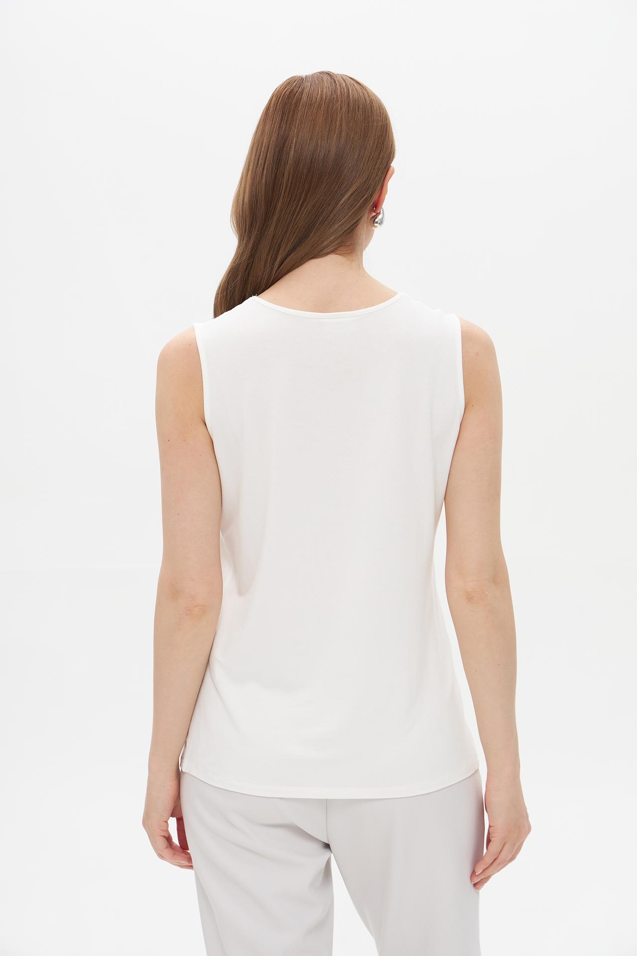Элегантный белый топ от Lebek - это идеальное сочетание комфорта и стиля. Мягкая и приятная к телу ткань из вискозы с добавлением эластана обеспечивает идеальную посадку и свободу движений. Этот топ станет отличным дополнением к вашему гардеробу, подходящим как для повседневной носки, так и для особых случаев.