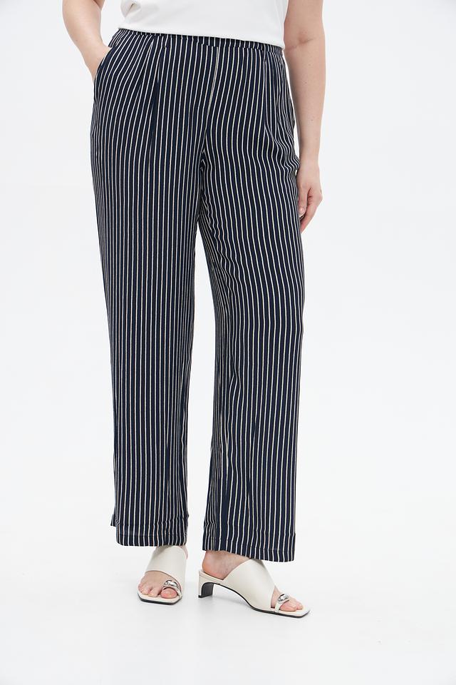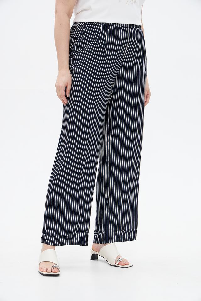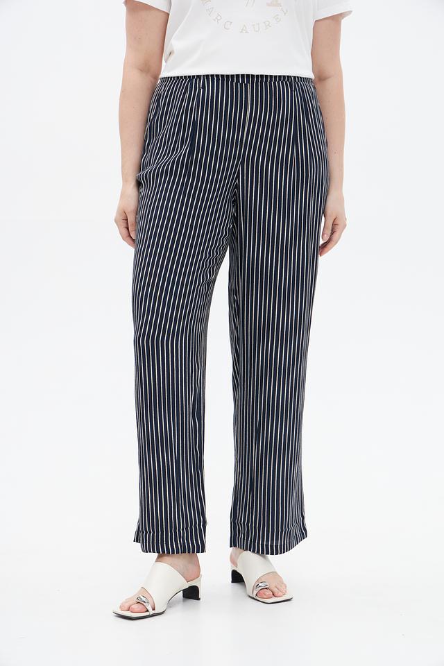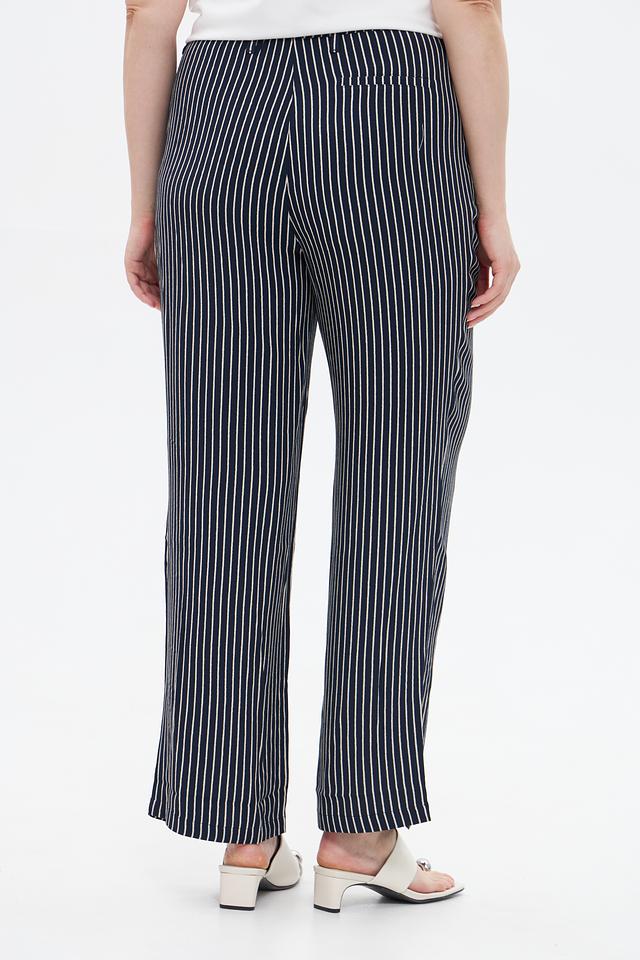 Женские брюки Lebek синего цвета с вертикальной полоской, выполнены из мягкой вискозы. Удобная посадка на эластичном поясе и широкий крой для комфортного силуэта. Состав: вискоза 100%