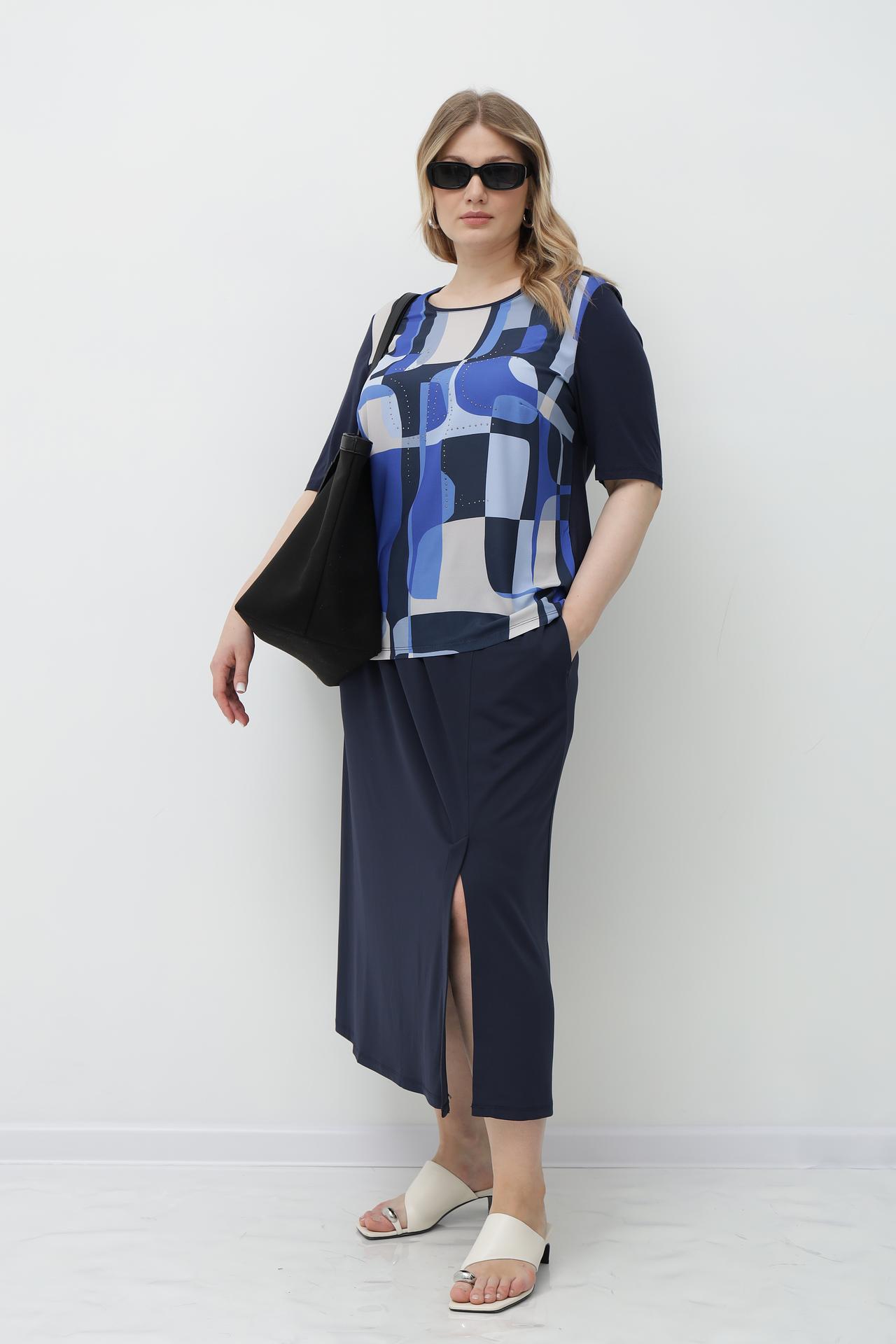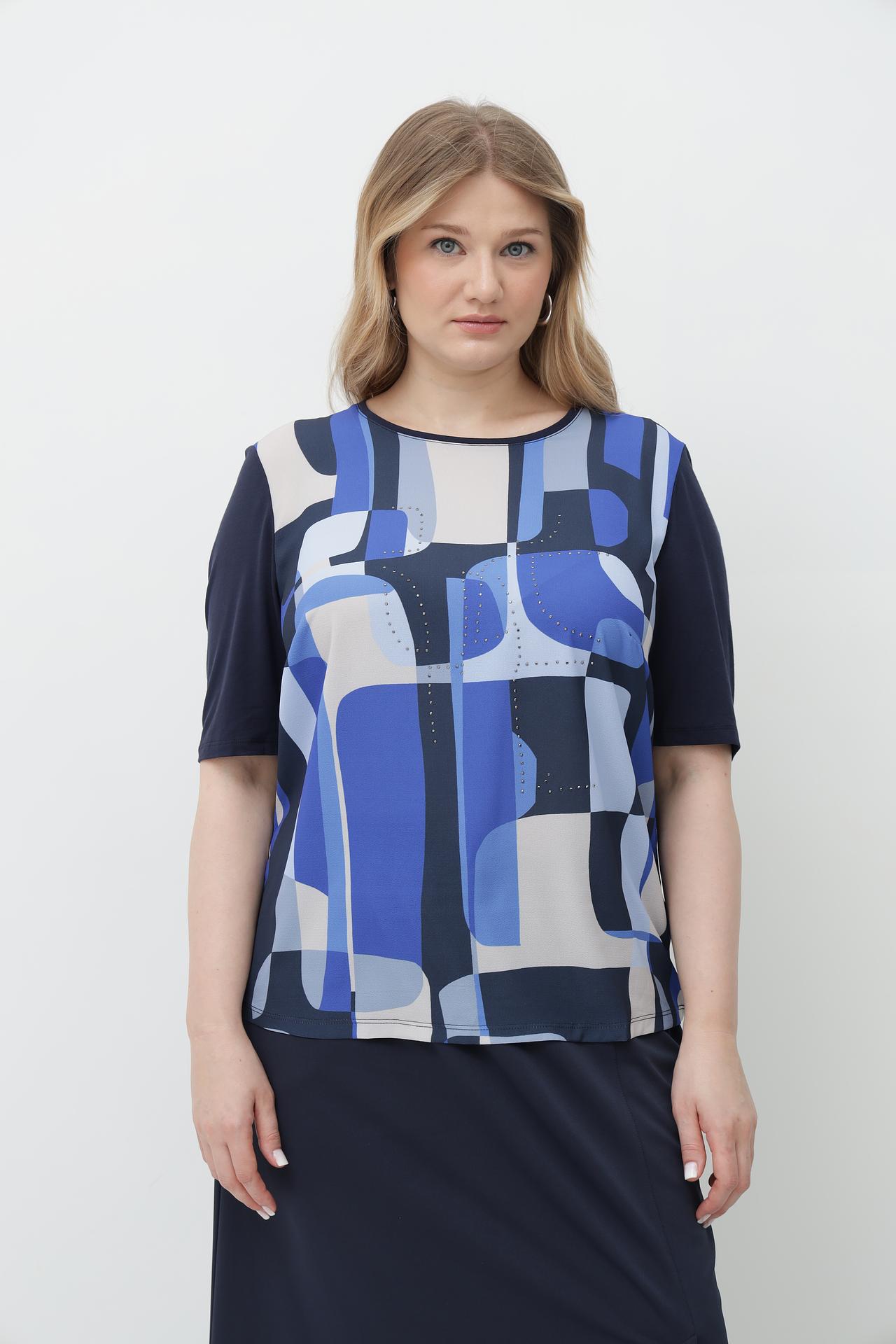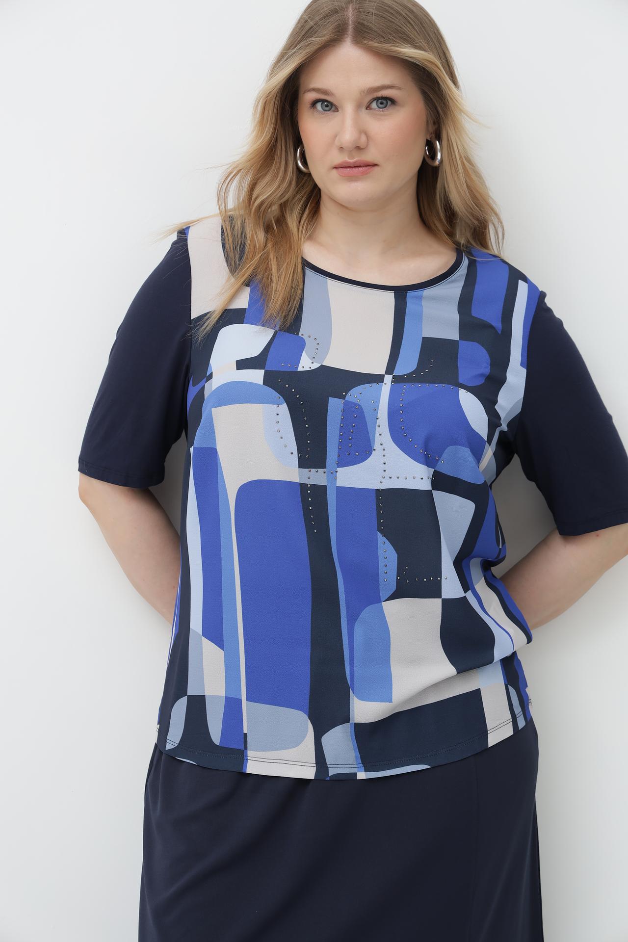 Блуза Lebek синяя с геометрическим принтом и стразами
