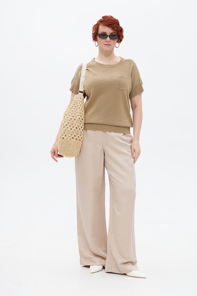 Бежевый пуловер от Lebek – это стильный и комфортный выбор на каждый день. Изготовлен из натурального хлопка с добавлением льна, обеспечивающего приятные тактильные ощущения. Короткий рукав и декор в виде кармана. Состав: хлопок 55%, лен 45%