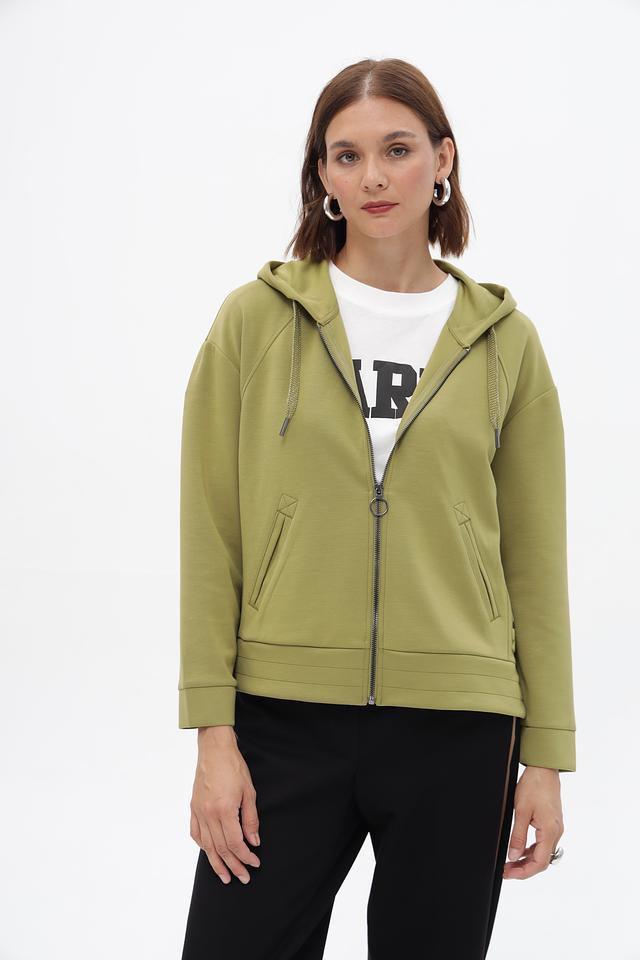 Жакет Lebek оливкового цвета – это стильная и удобная модель на молнии. Удлиненный крой и капюшон делают его практичным выбором для прохладной погоды. Жакет выполнен из мягкой ткани с добавлением вискозы и эластана. Состав: полиэстер 50%, вискоза 45%, эластан 5%
