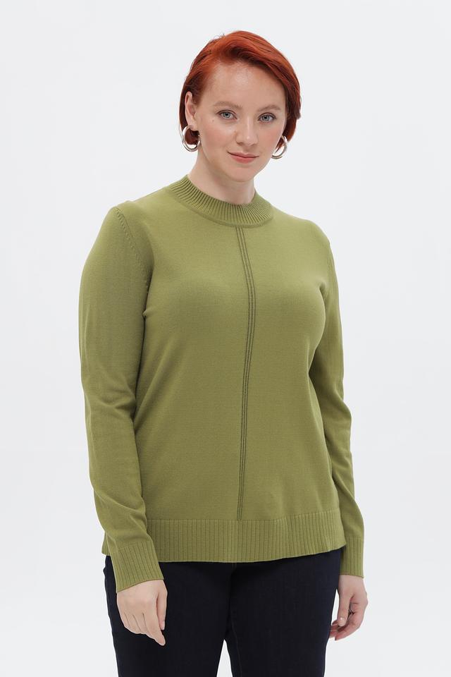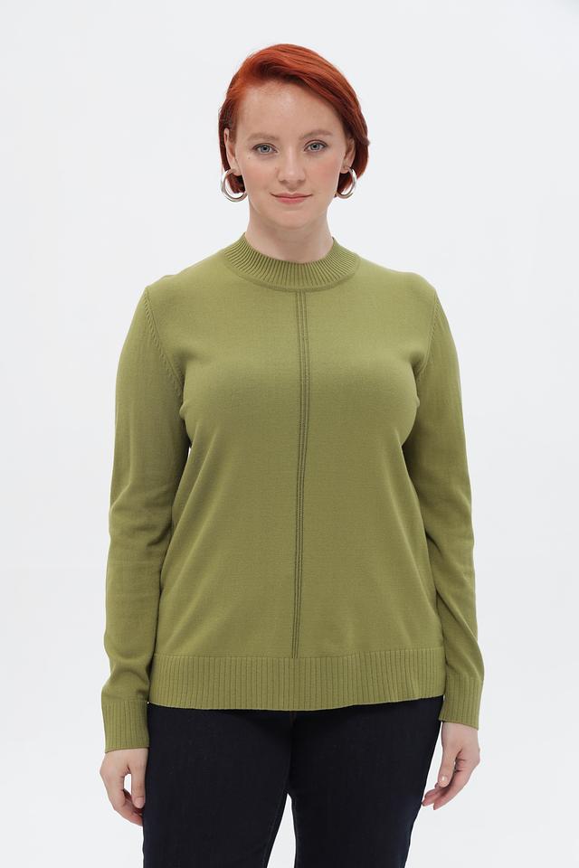 Женский пуловер от бренда Lebek выполнен в спокойном оливковом оттенке. Модель имеет прямой крой и удобную посадку по фигуре.