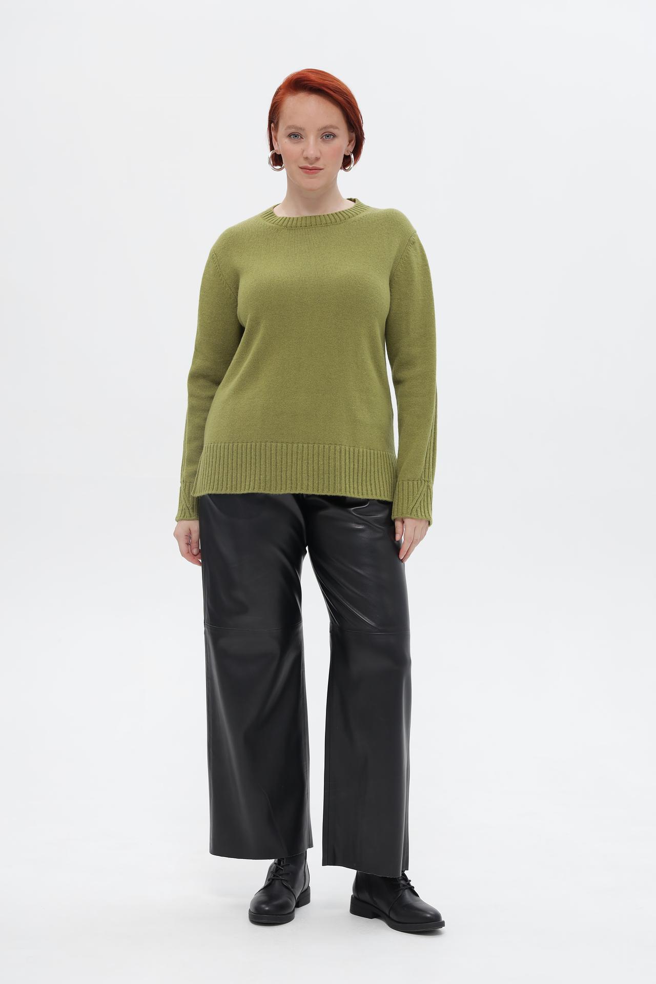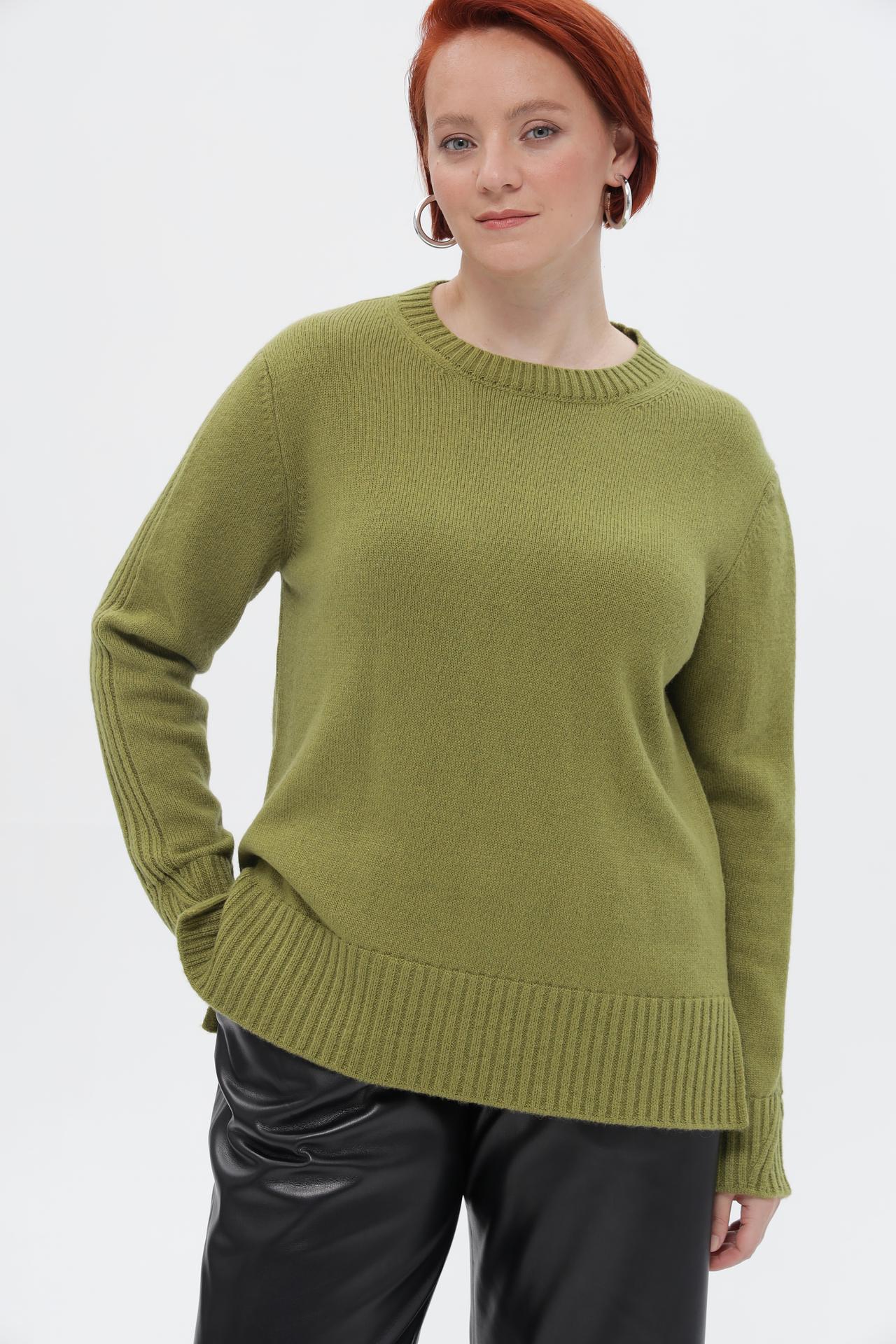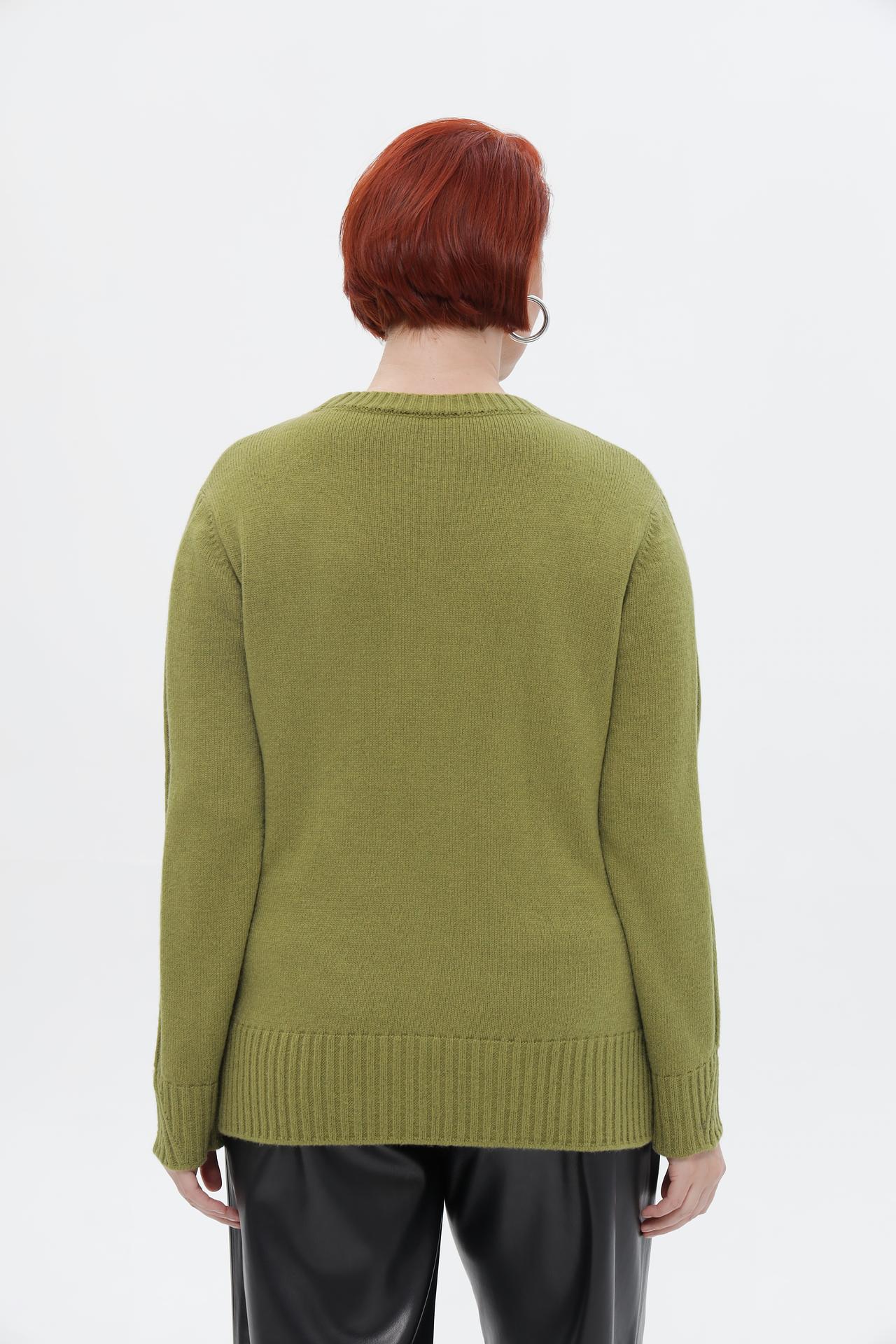 - Дизайн: Классический прямой крой с круглым вырезом горловины. Особенностью модели являются вертикальные декоративные швы на рукавах и эластичная резинка по низу изделия, придающие пуловеру завершенный вид.