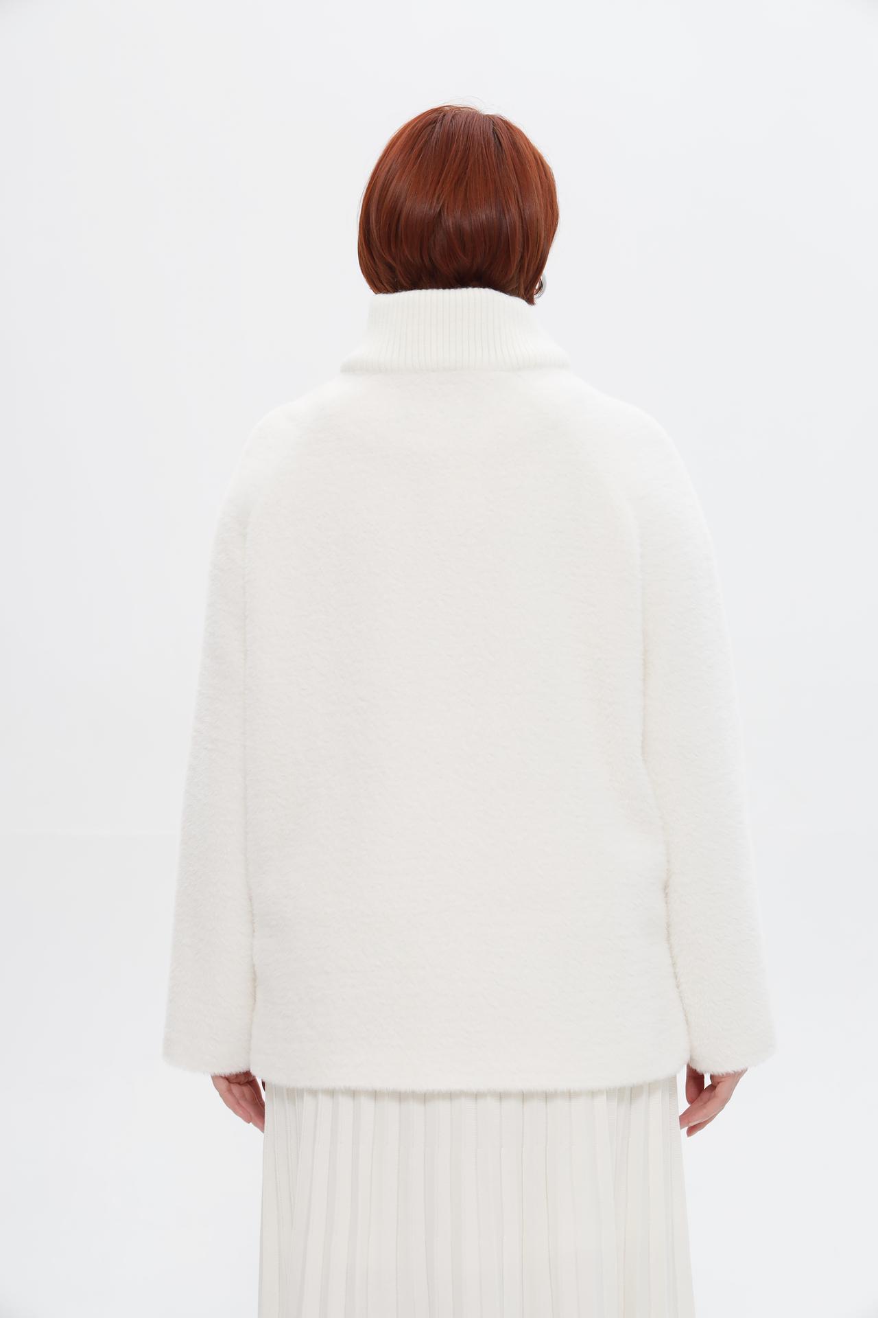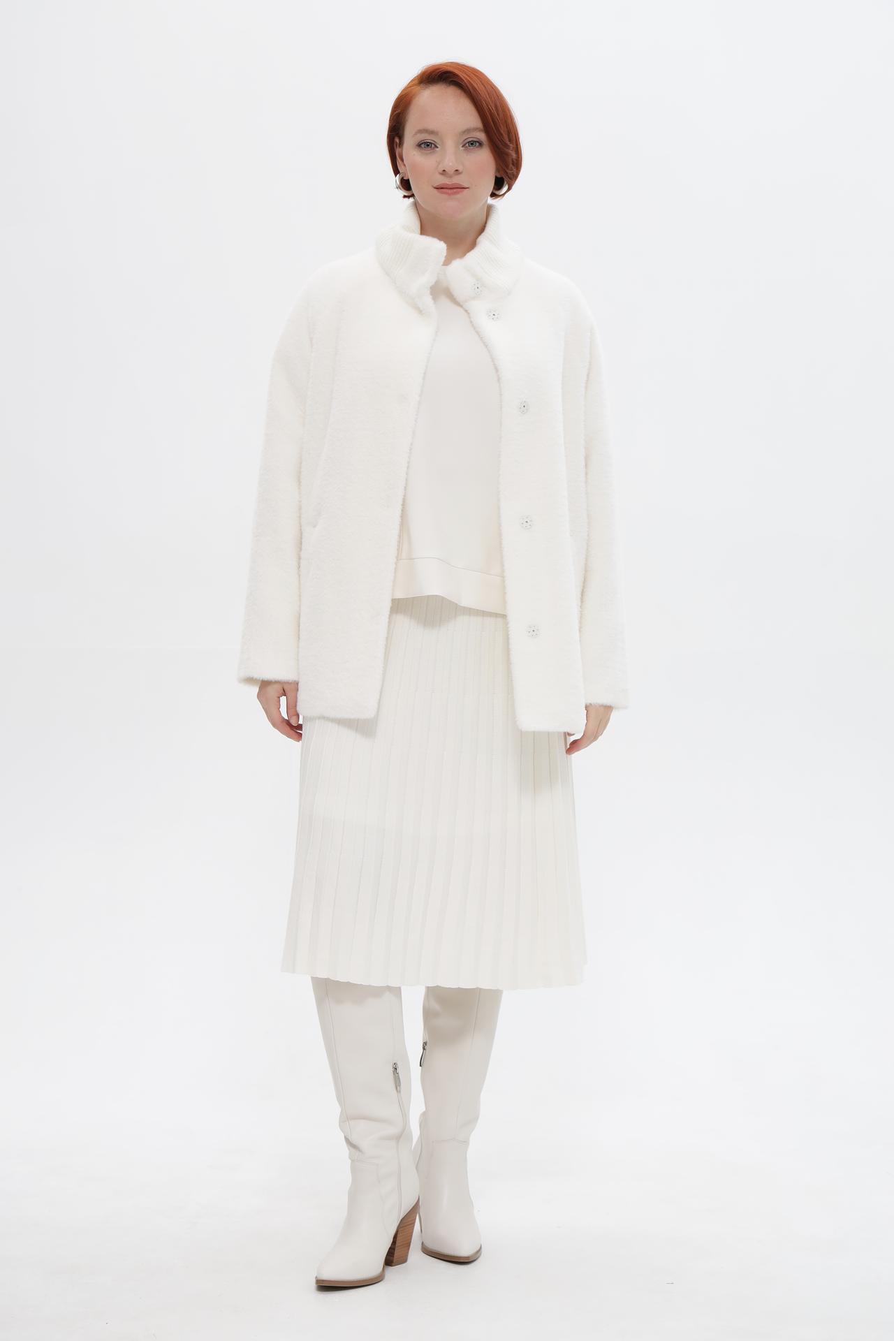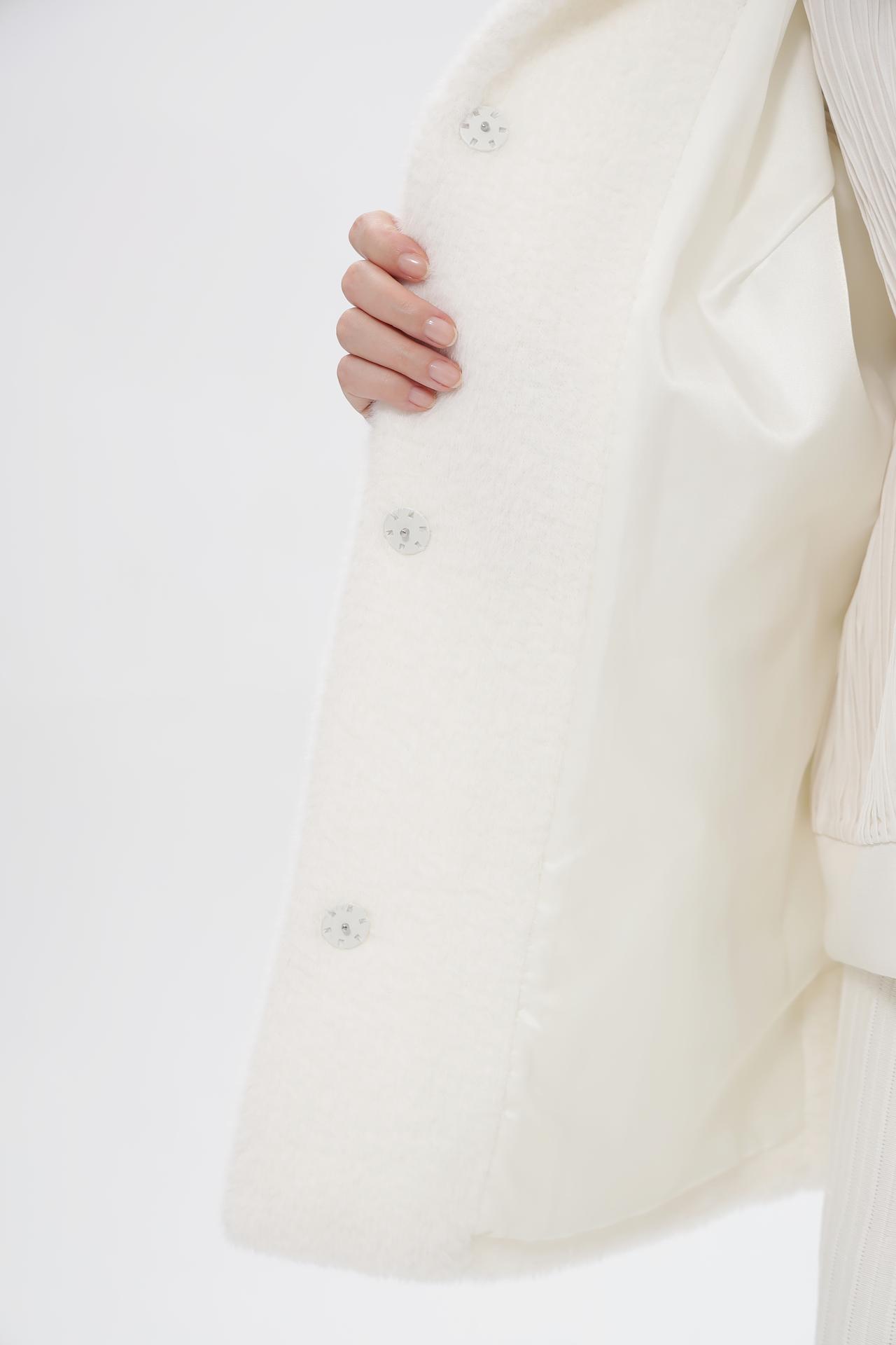 - Фактура: Мягкий искусственный мех создает приятные тактильные ощущения и придает пальто роскошный вид. Фактурная поверхность притягивает взгляд и добавляет образу глубины.